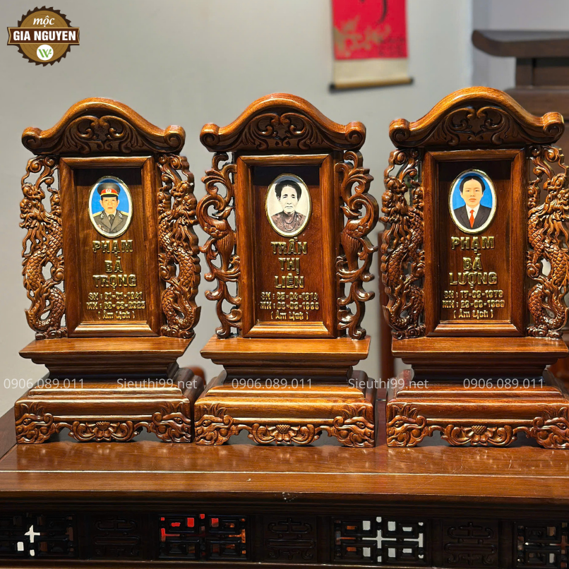 Từ khung ảnh thờ khắc chữ đến bài vị gắn ảnh, mọi sản phẩm đều toát lên vẻ trang nghiêm mà gần gũi, mộc mạc mà sang trọng.
