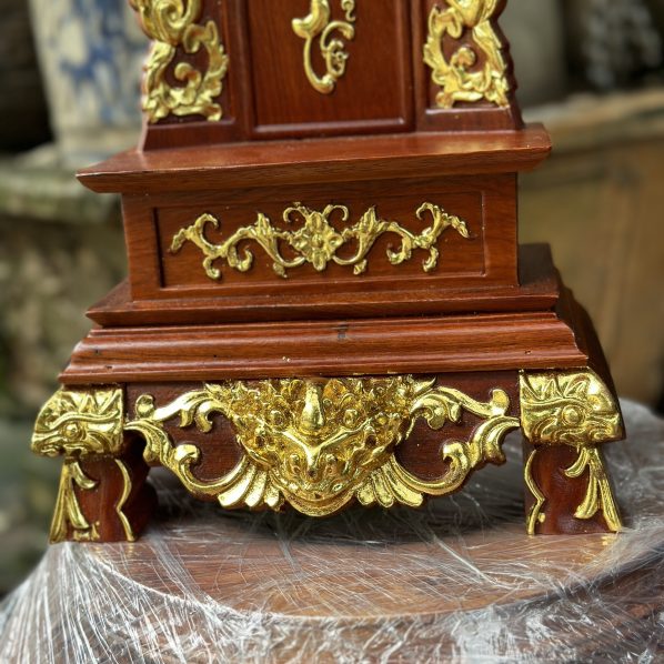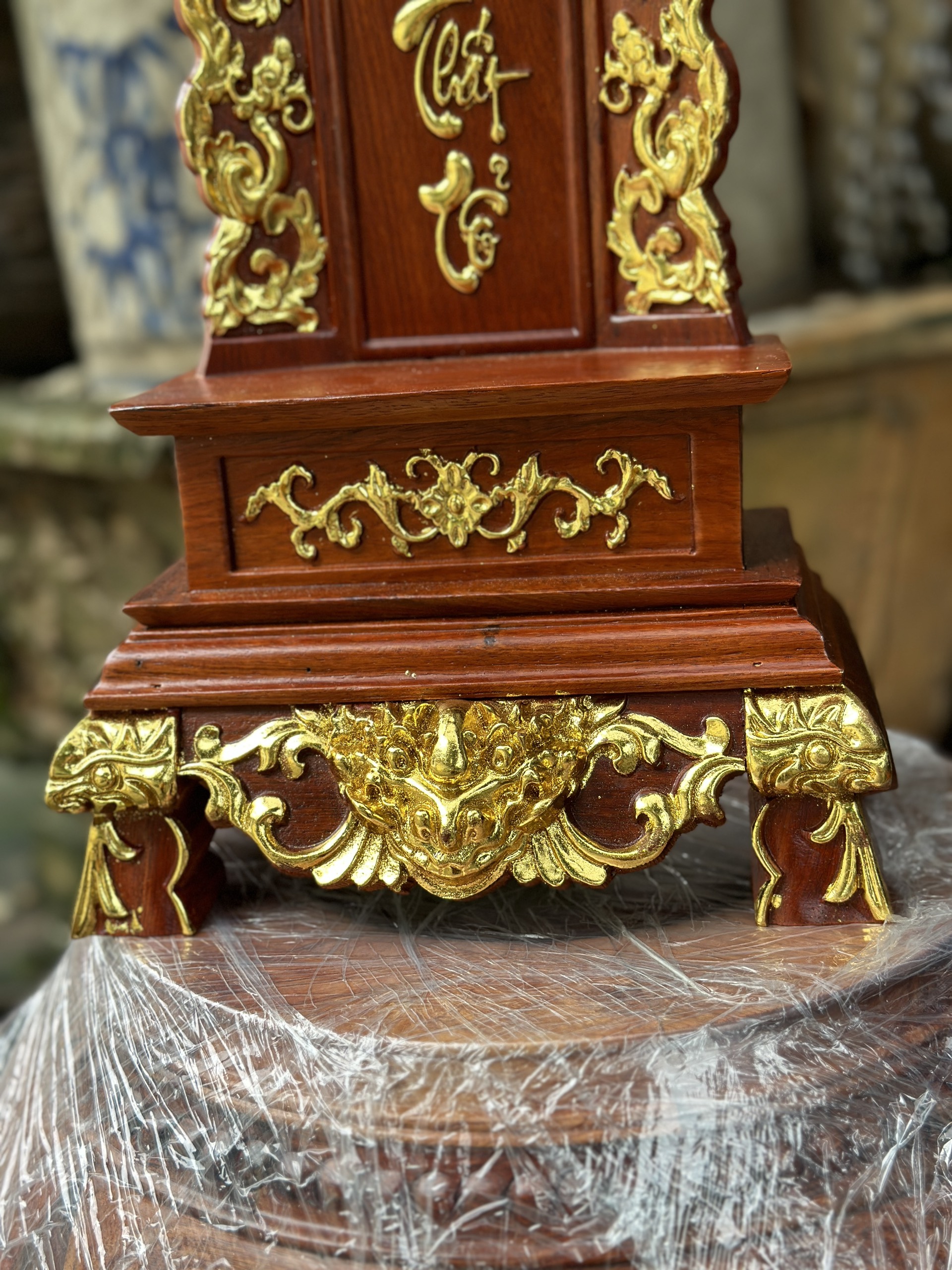 Bài vị gia tiên gỗ hương dát vàng được thiết kế với sự tinh tế và sang trọng. Các đường nét hoa văn trên bài vị được trạm trổ sắc nét, tạo nên một hình ảnh đẹp mắt và tinh xảo.