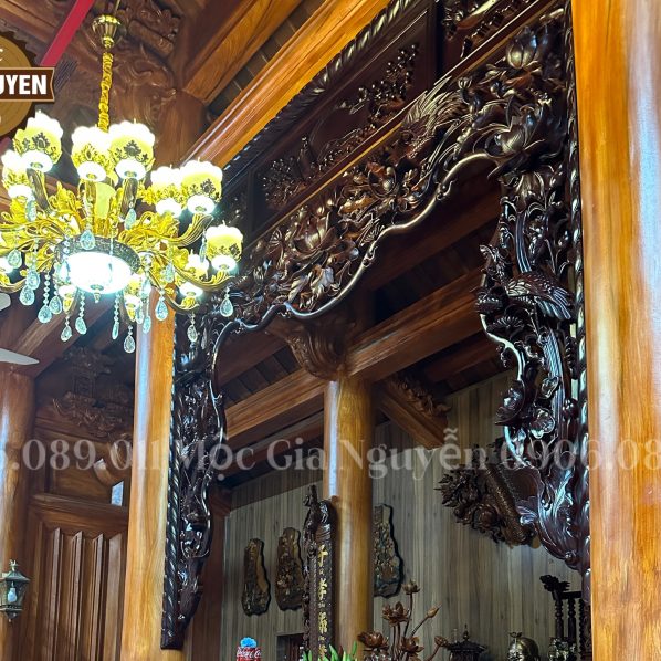Các đường nét hoa văn trên bài vị gia tiên có thể được lựa chọn từ các yếu tố truyền thống như mặt nguyệt, hoa lá tây uốn lượn, mặt hổ phù. Những đường nét này thường mang ý nghĩa phong thủy và tượng trưng cho sự may mắn, sức khỏe và thịnh vượng.