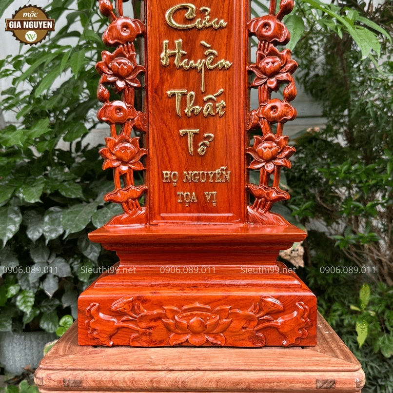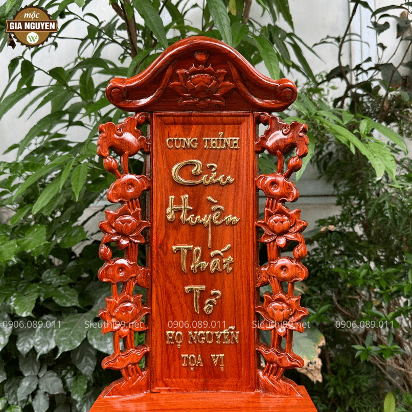 Bài Vị Cửu Huyền Thất Tổ Hoa Sen Gỗ Hương 48cm BH18