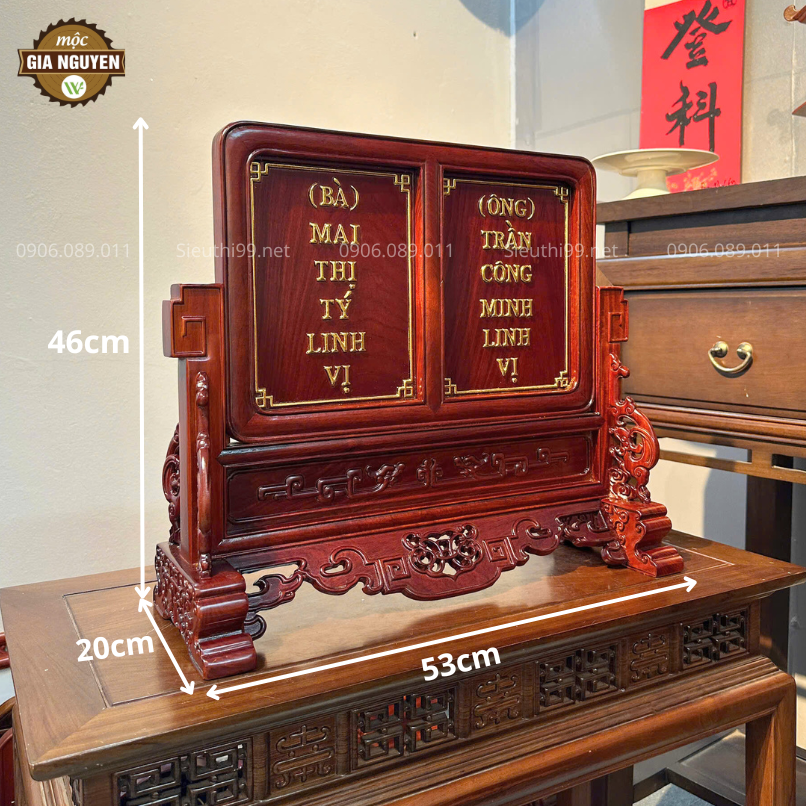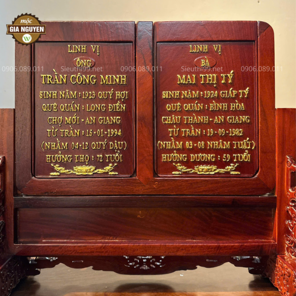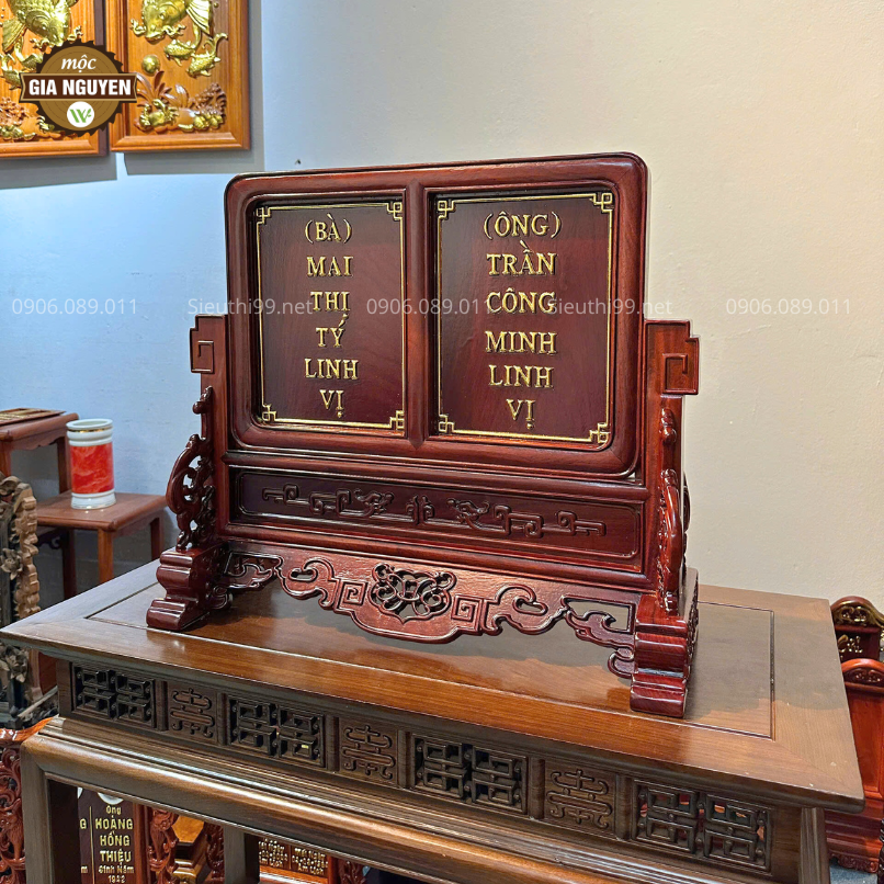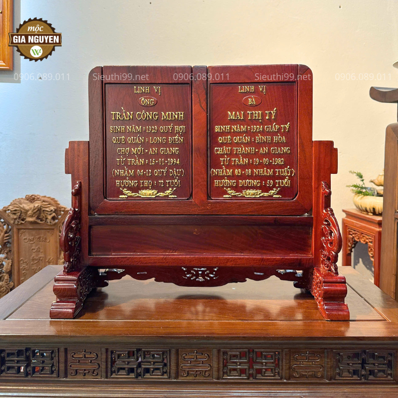 Bài Vị Đôi Dát Vàng Gỗ Hương BH24