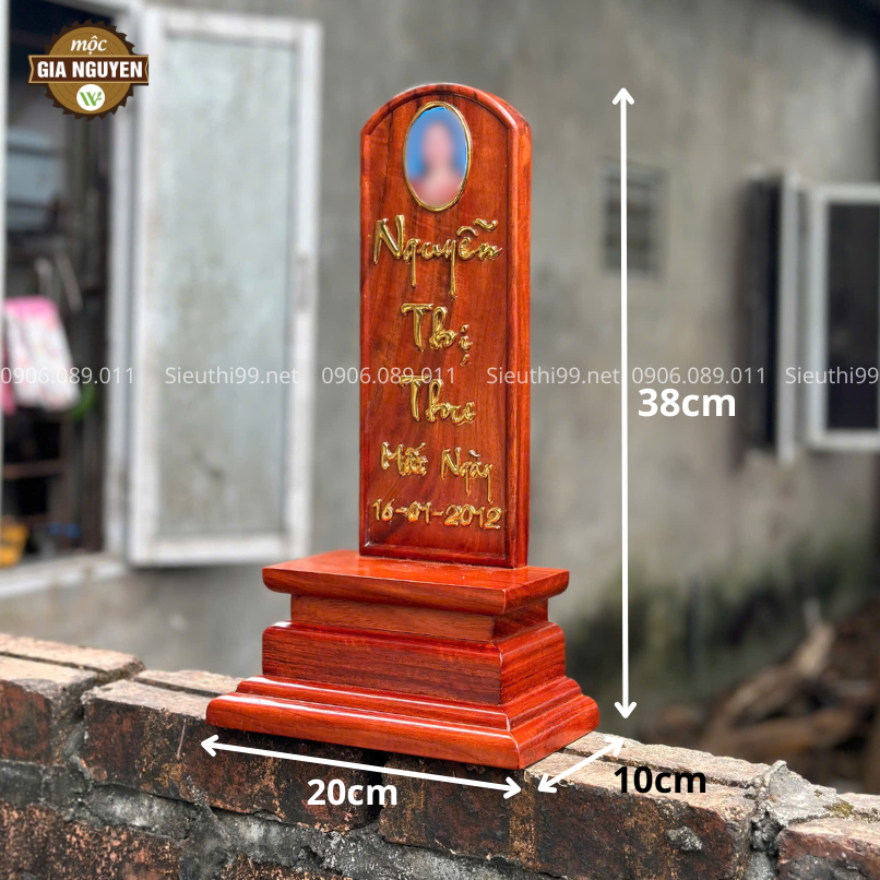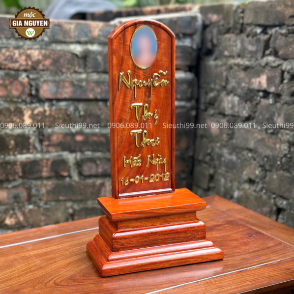 Bài Vị Gắn Ảnh Gỗ Hương 38cm BV52