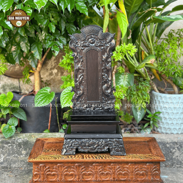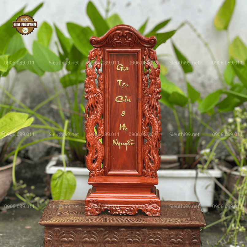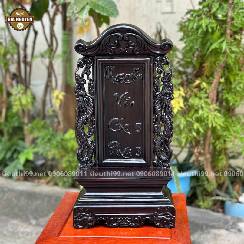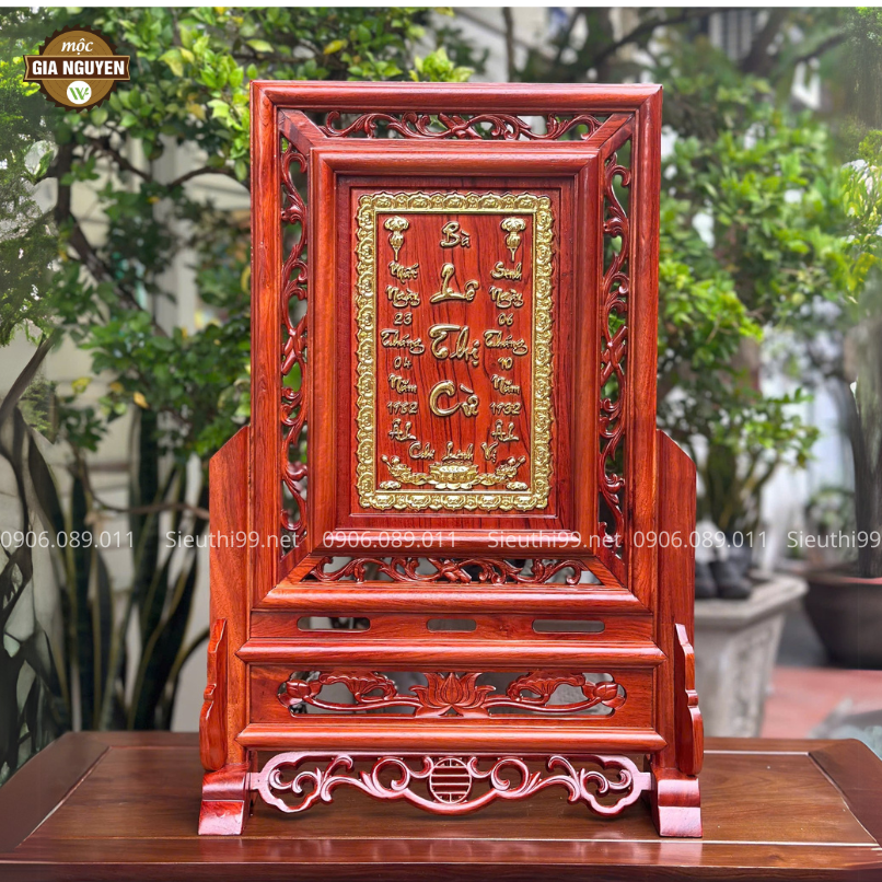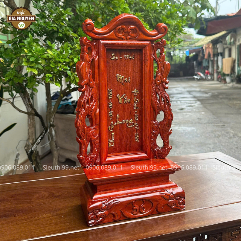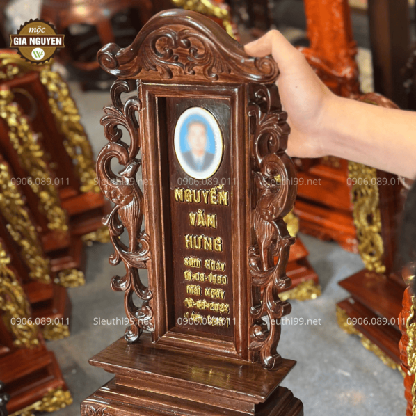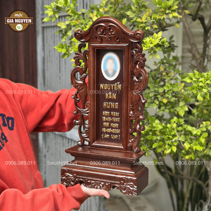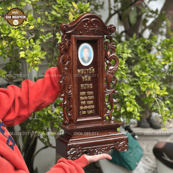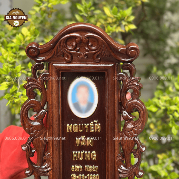 Thông tin sản phẩm: Bài Vị Gắn Ảnh Gỗ Hương Màu Óc Chó Cao 48cm BV61