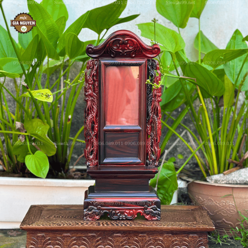 Bài Vị Gắn Ảnh Gỗ Hương Màu Óc Chó Cao 48cm BV61