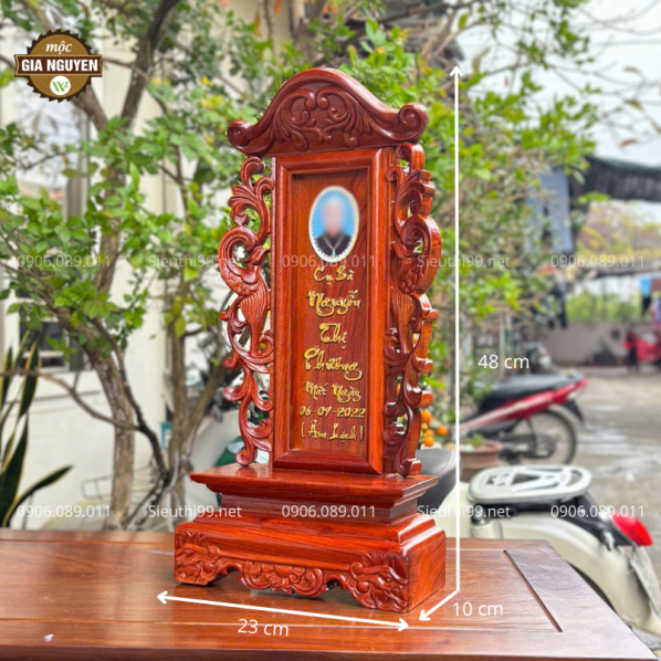 - Chiều cao 48 cm: Bài vị có chiều cao 48 cm, rất phù hợp với các loại bàn thờ có kích thước trung bình, tạo sự hài hòa và không chiếm quá nhiều diện tích.