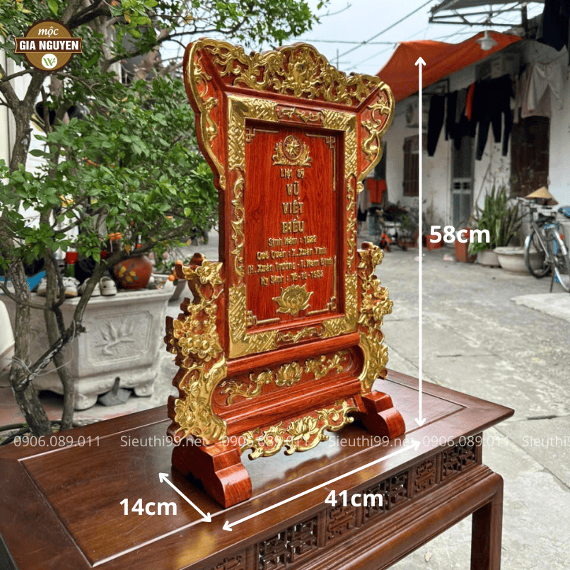 Bài Vị Hoa Mai Gỗ Hương Dát Vàng 58cm BH10