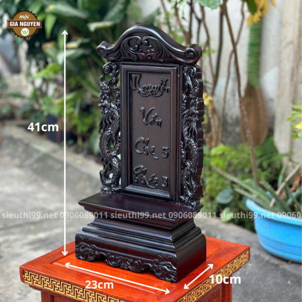 Kích thước: Chiều cao 41cm x Ngang 23cm x Sâu 10cm là kích thước tiêu chuẩn, phù hợp với nhiều không gian thờ cúng khác nhau, từ nhà thờ họ đến bàn thờ gia tiên.