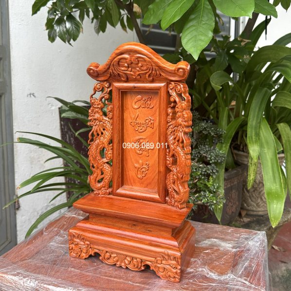 Bài vị thờ Cửu Huyền Thất Tổ Song Long gỗ hương 41cm