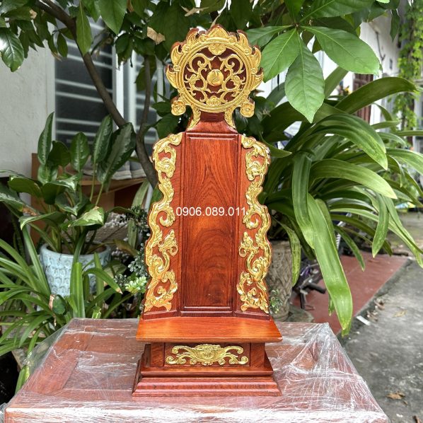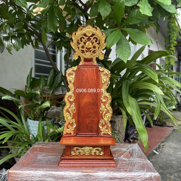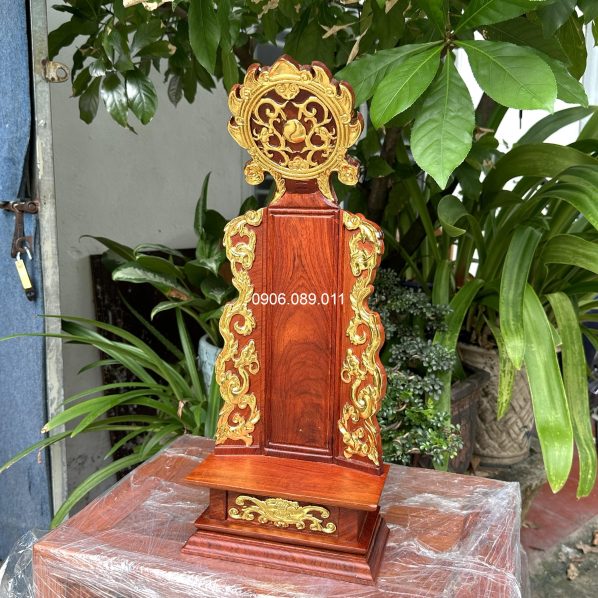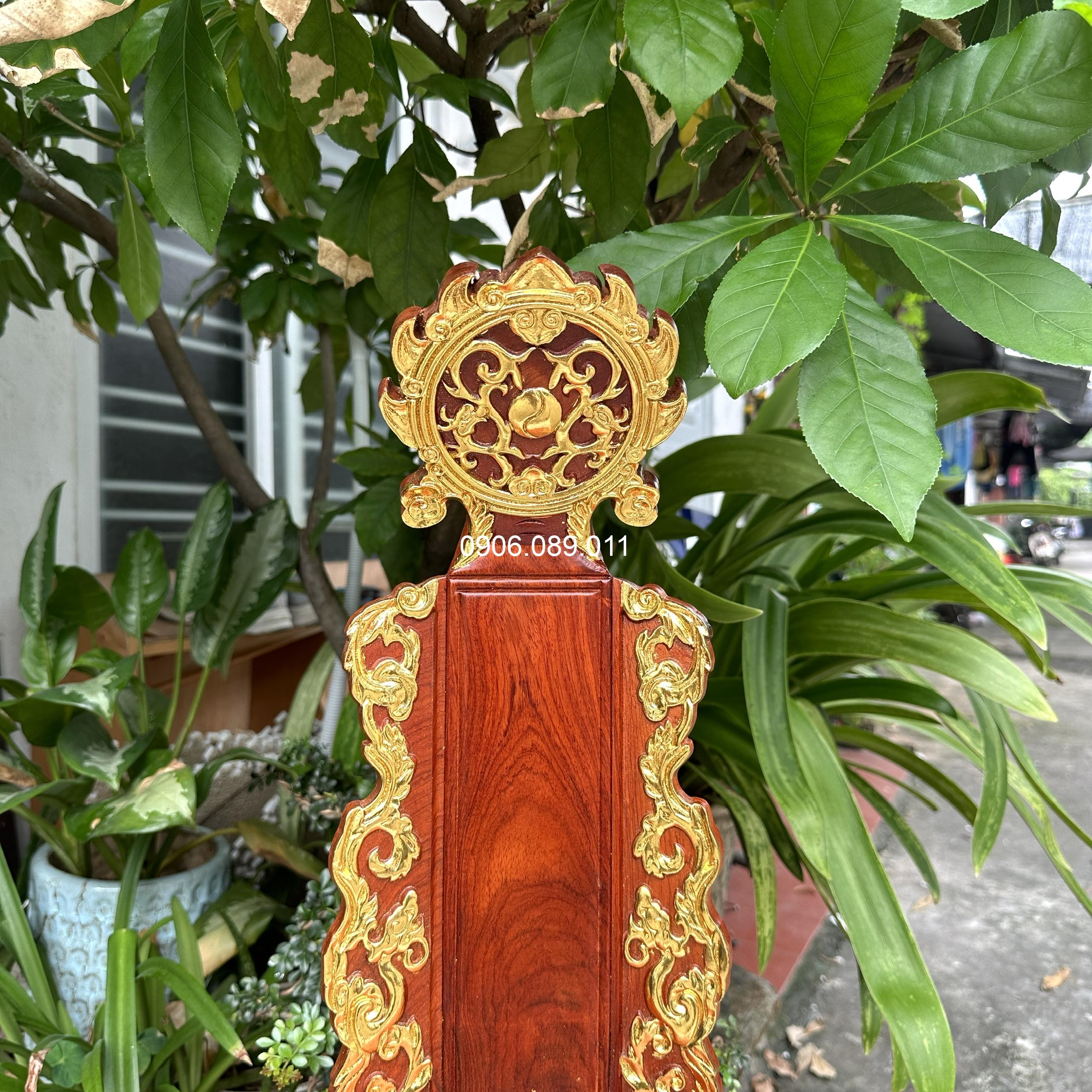 Bài vị thờ gia tiên mặt nguyệt dát vàng gỗ hương cao cấp 48cm