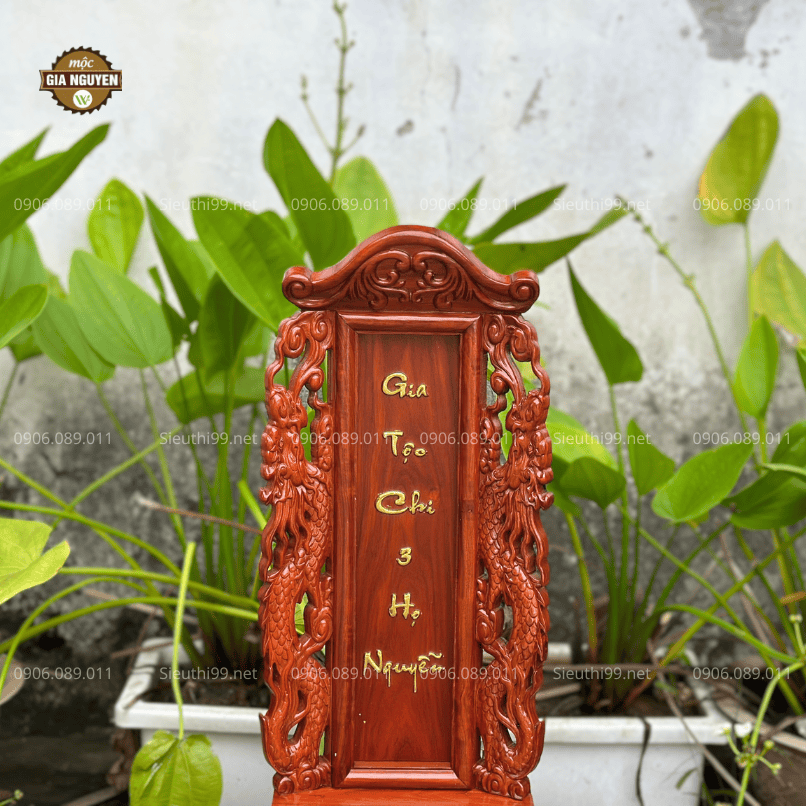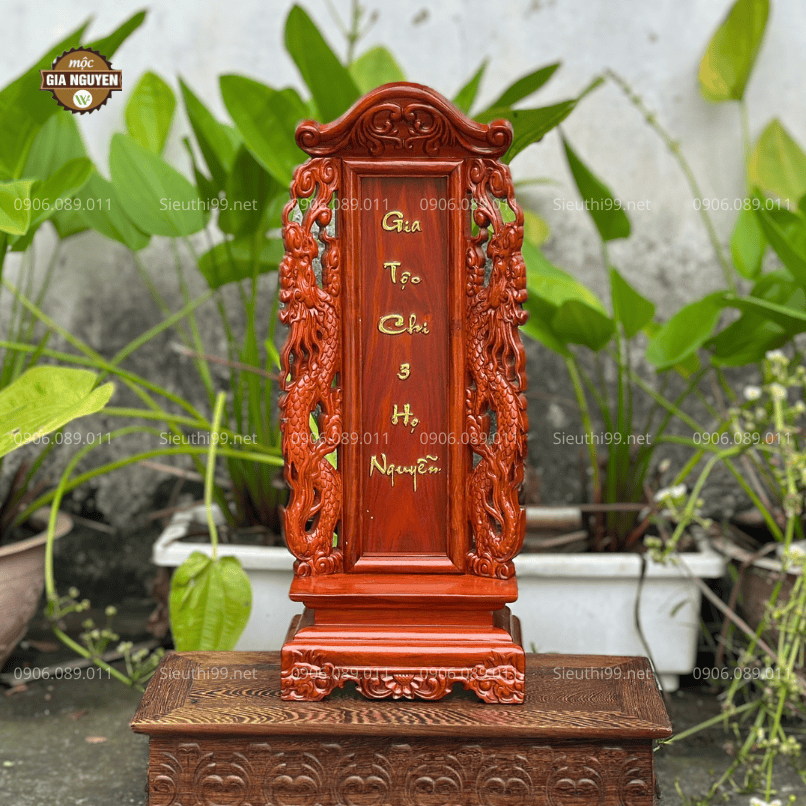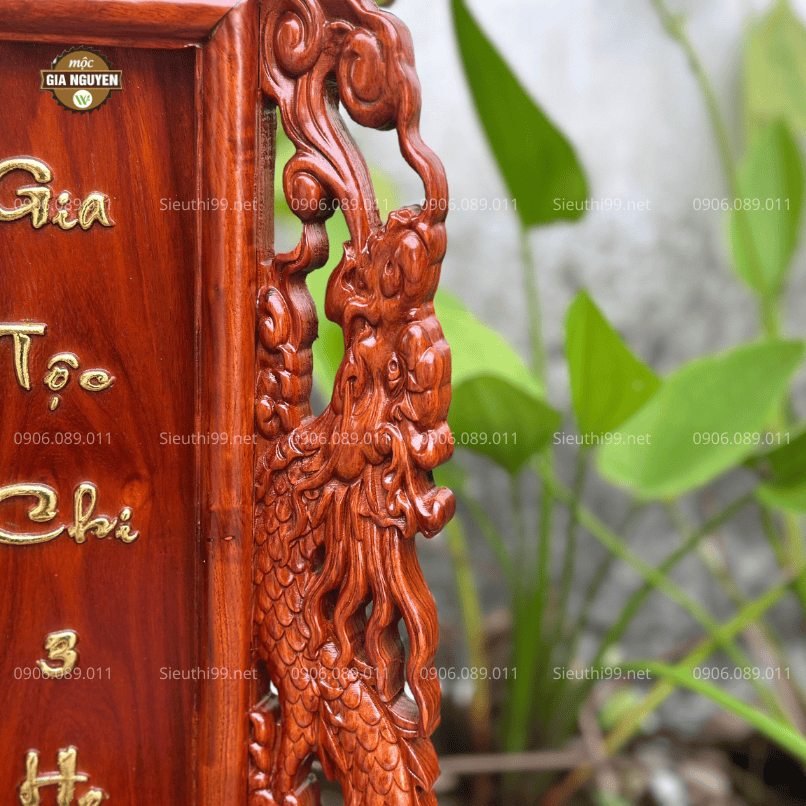 Tên sản phẩm: Bài vị thờ gỗ hương Song Long 61cm GHF7