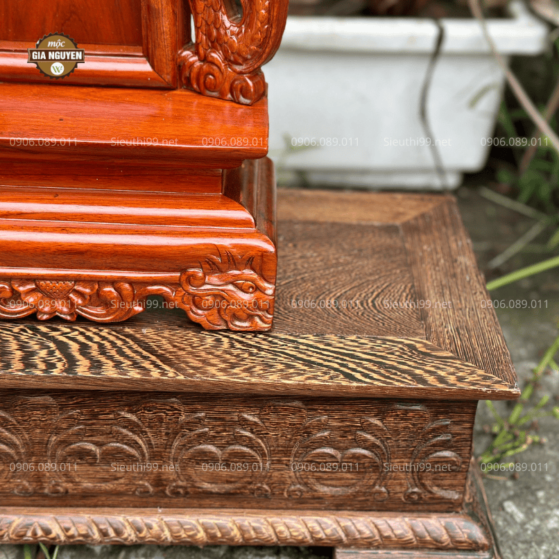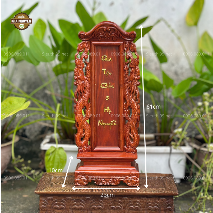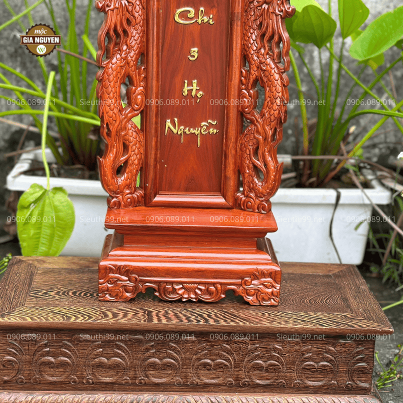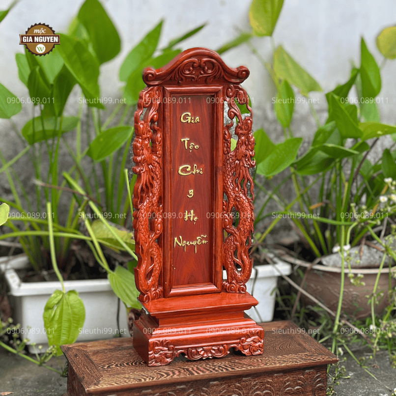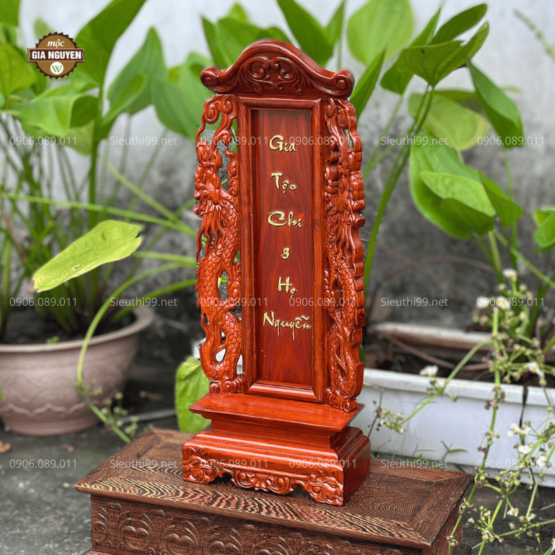 Bài vị thờ gỗ hương Song Long 61cm GHF7
