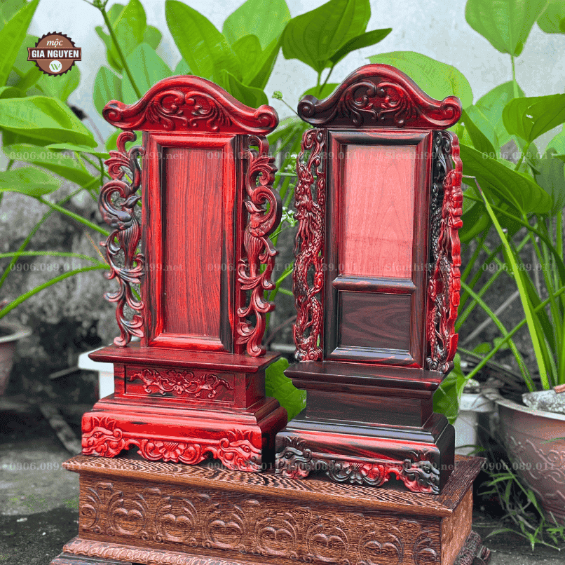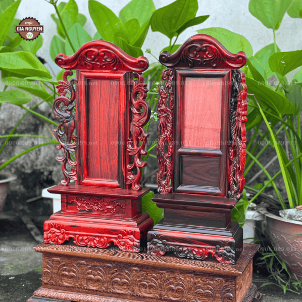 Bài vị thờ gỗ trắc Song Phụng 48cm