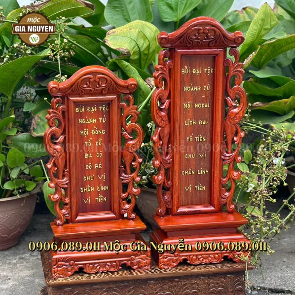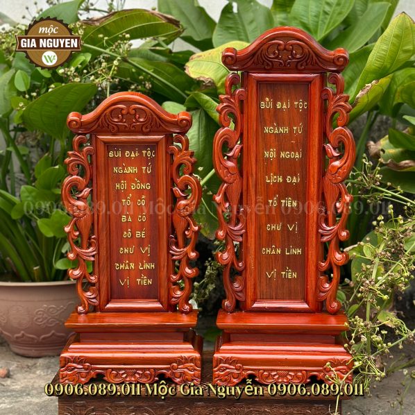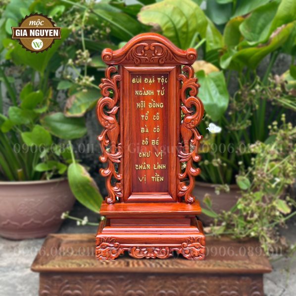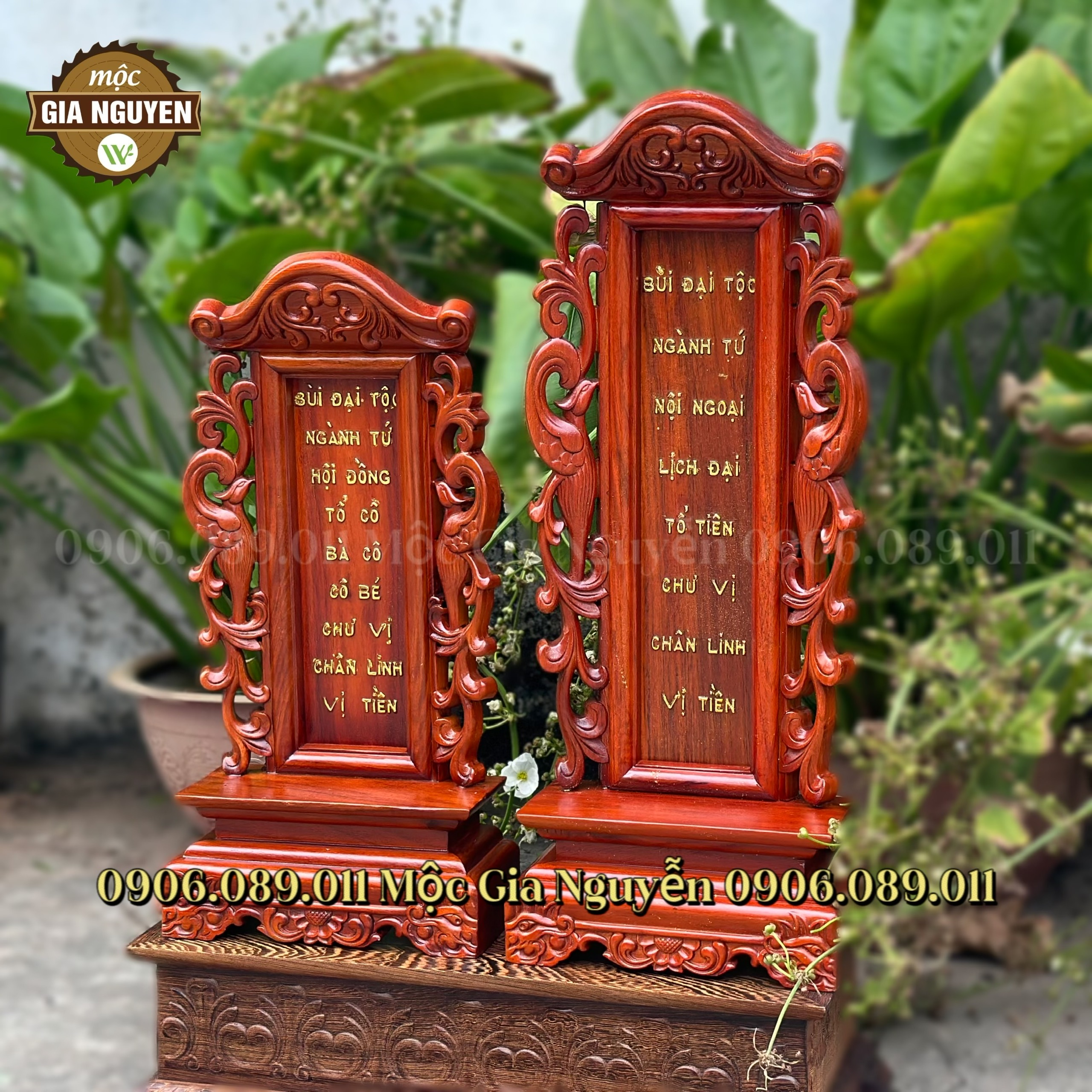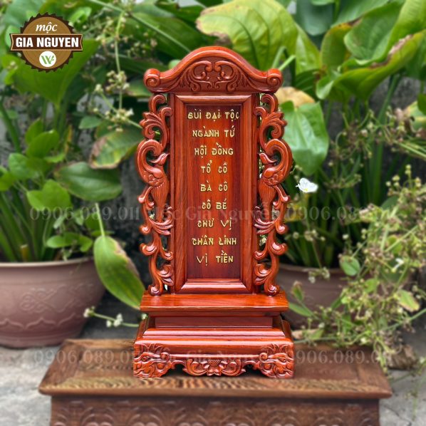 Thông tin sản phẩm: Bài vị thờ Song Phụng gỗ hương 48cm