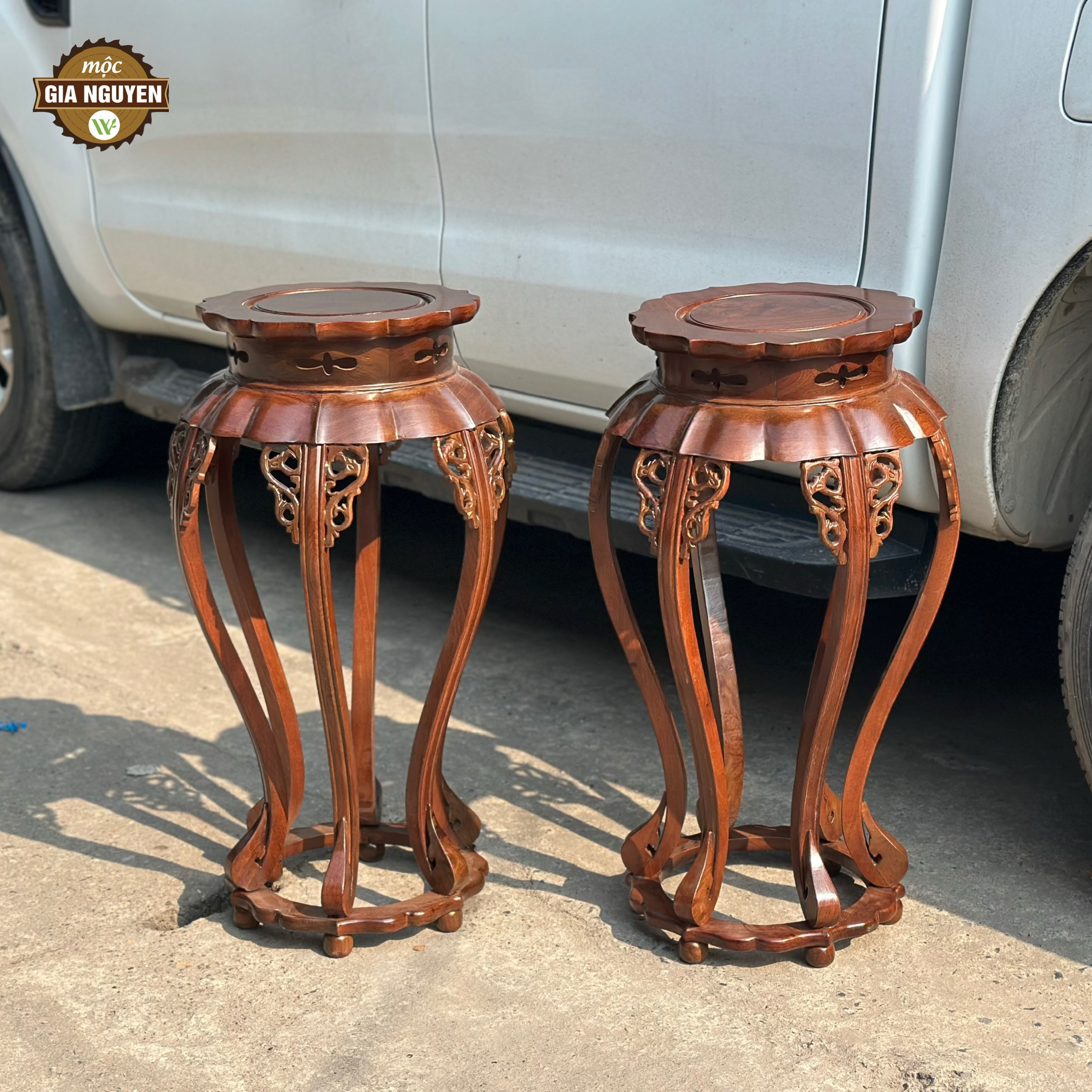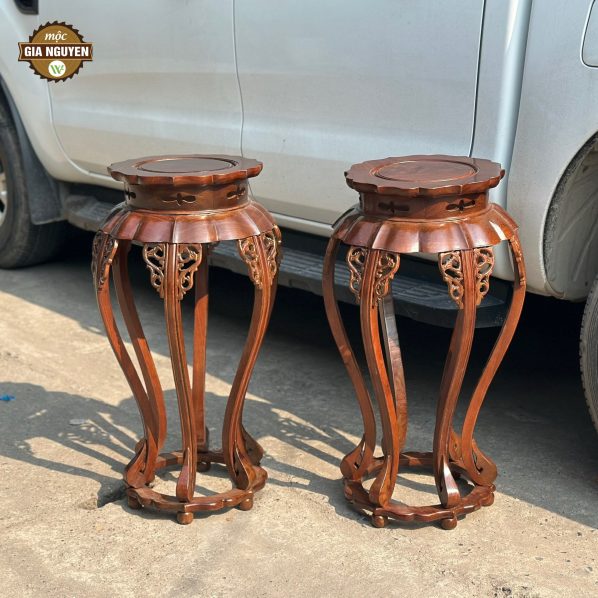 Thiết kế đục hai mặt: mặt trước khắc hình 2 phụng uốn mình; mặt sau có hoa văn cầu kỳ. Phần trên bài vị trơn nhẵn để điền vàng khắc chữ. Màu gỗ nâu ấm áp, thể hiện vẻ đẹp truyền thống cho không gian thờ cúng nhà bạn trở nên sang trọng, uy nghiêm.
