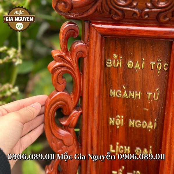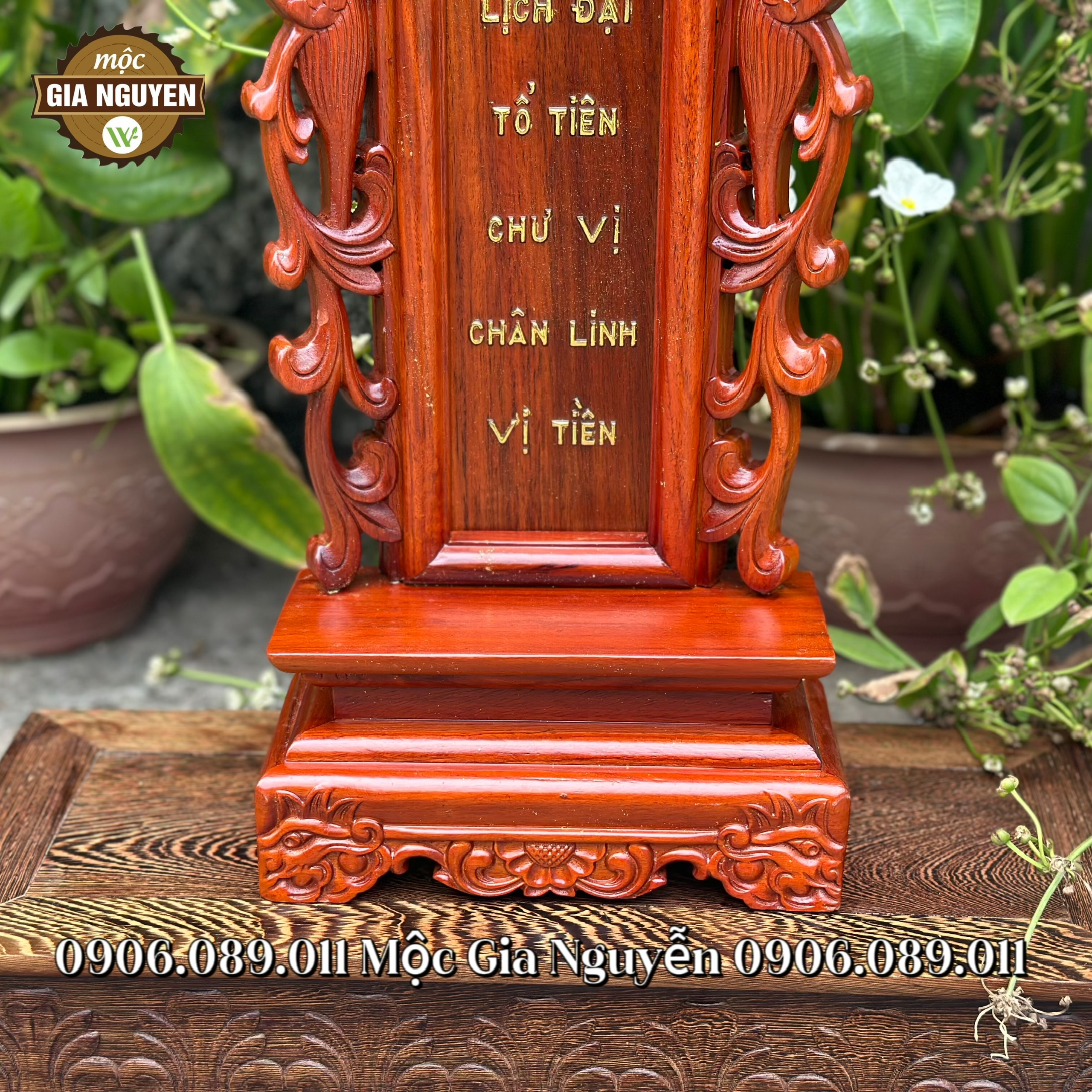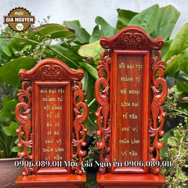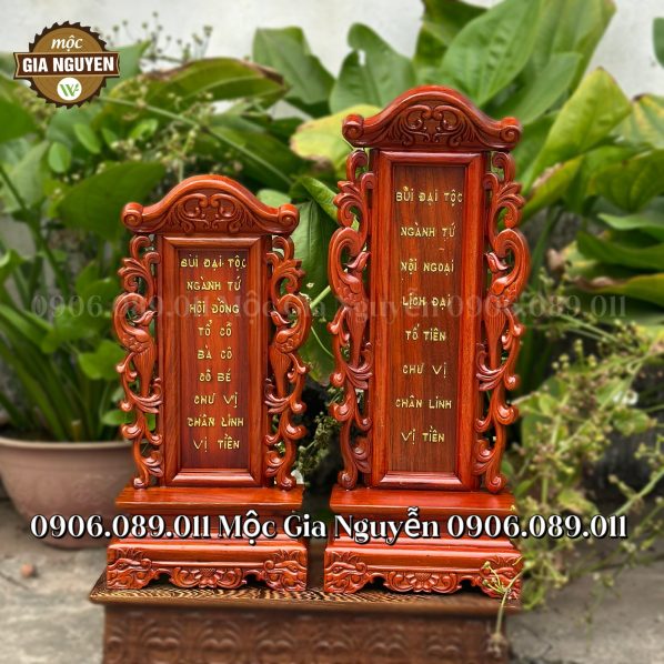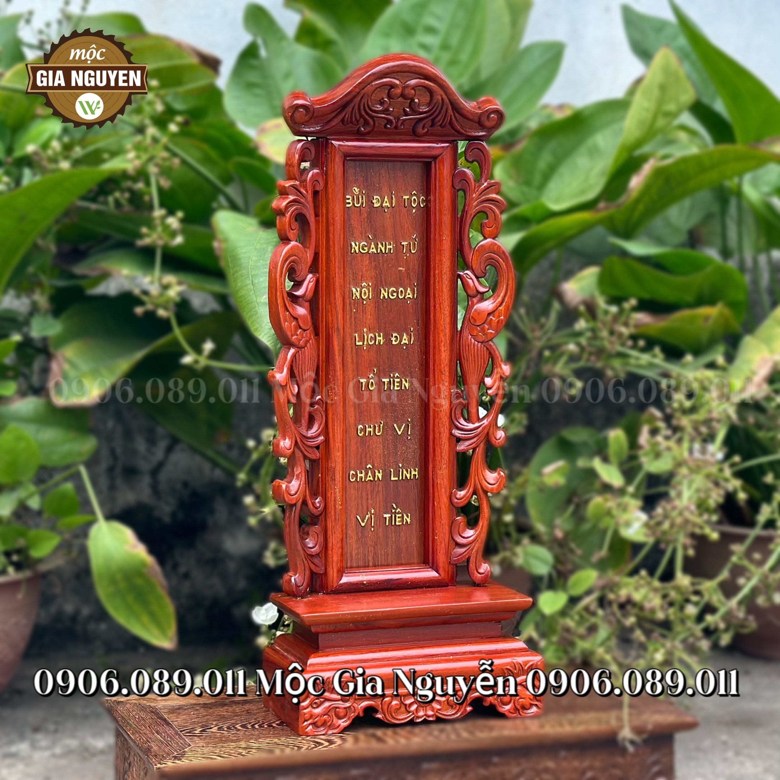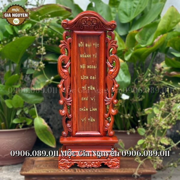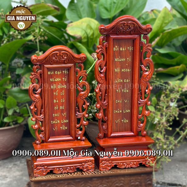 Thông tin sản phẩm: Bài vị Song Phụng gỗ hương đục hai mặt 58cm