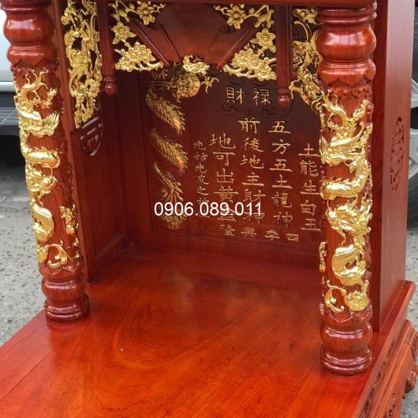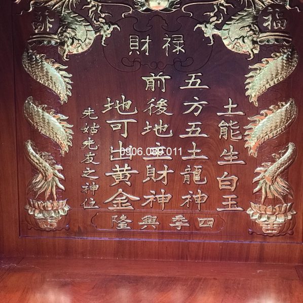 Ban thờ Thần tài Thổ địa đục chữ gỗ hương