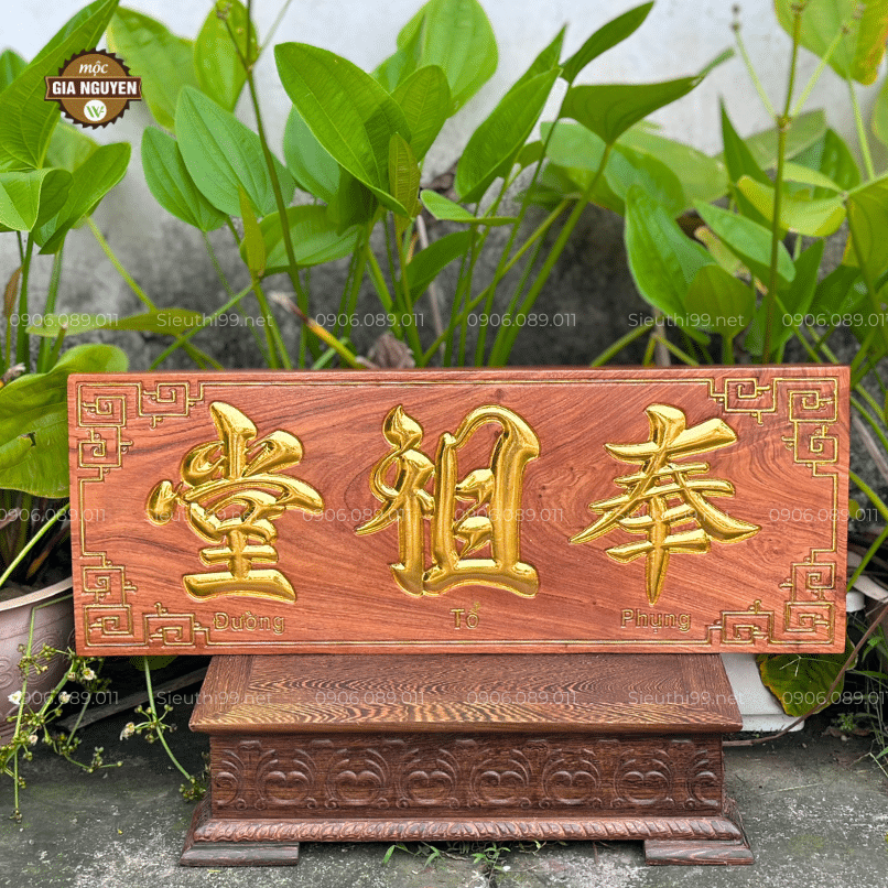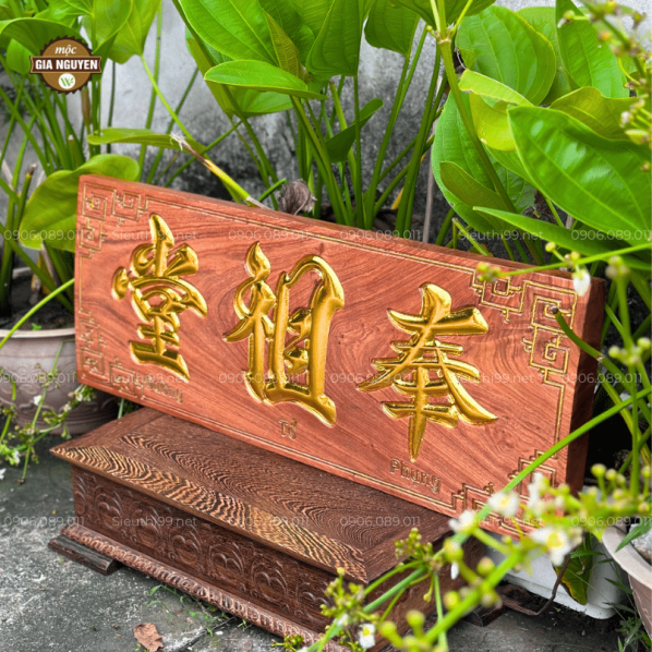 Bảng hiệu và hoành phi đục chữ gỗ hương là những sản phẩm thủ công mỹ nghệ cao cấp, thường được sử dụng trong trang trí nội thất gia đình, đền chùa, và các công trình kiến trúc truyền thống. Được chế tác từ gỗ hương – một loại gỗ quý hiếm với màu sắc đẹp, vân gỗ mịn và hương thơm tự nhiên, sản phẩm không chỉ mang tính thẩm mỹ cao mà còn thể hiện sự sang trọng, tinh tế.