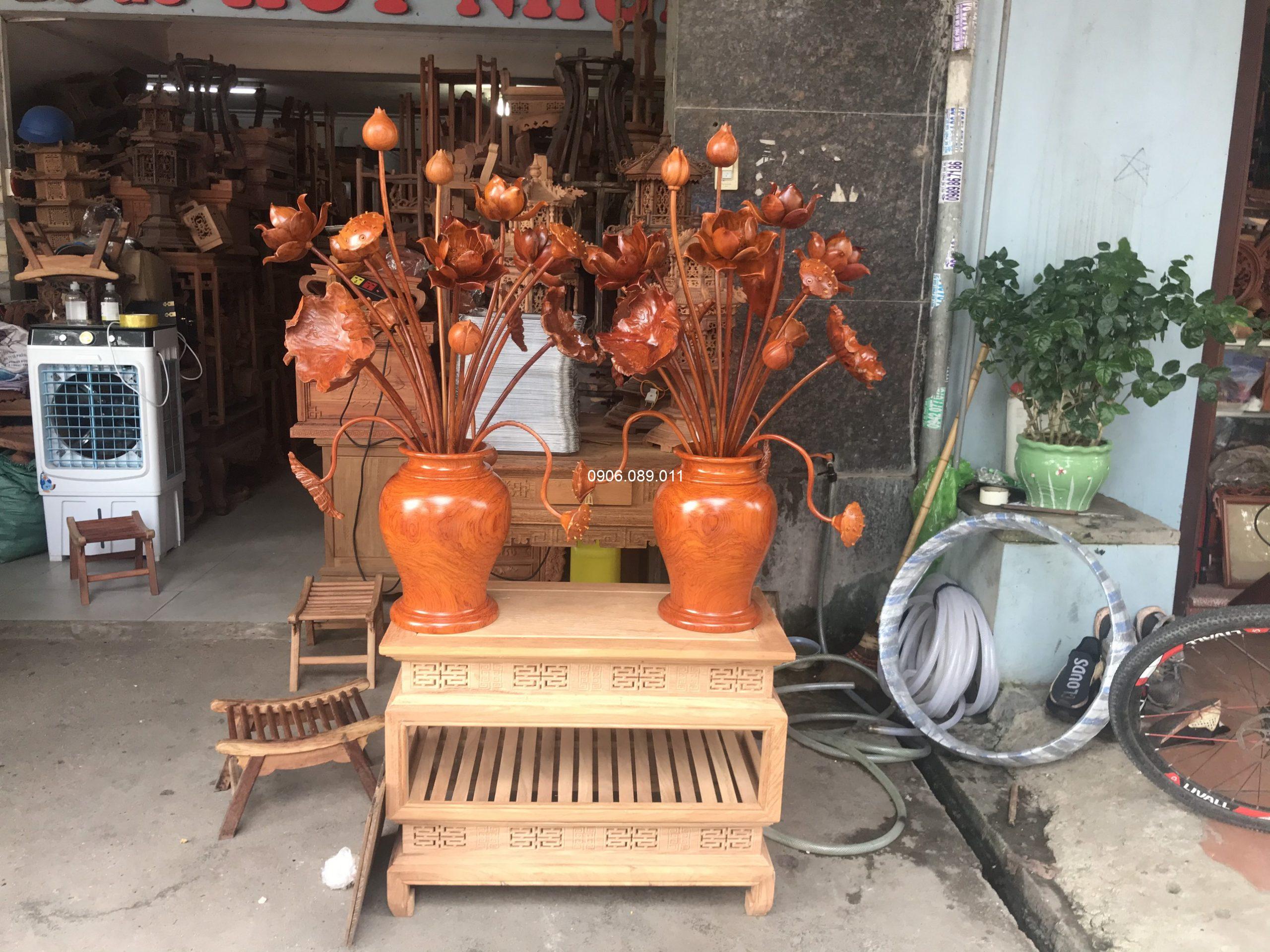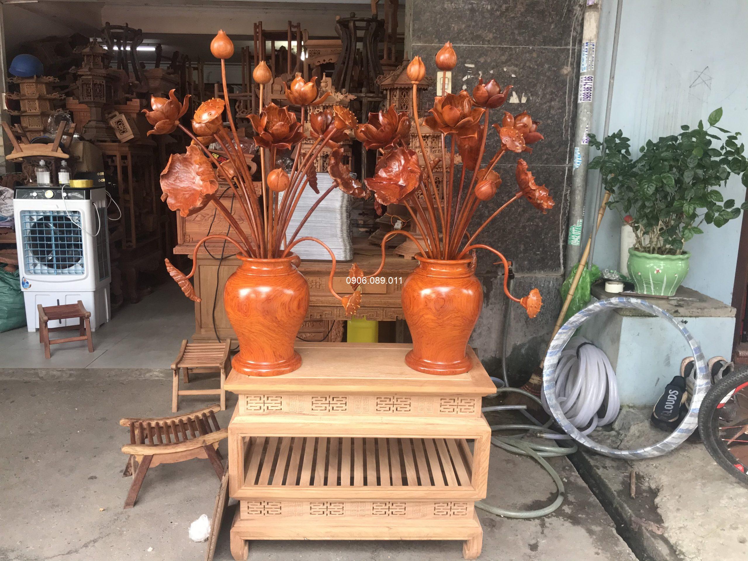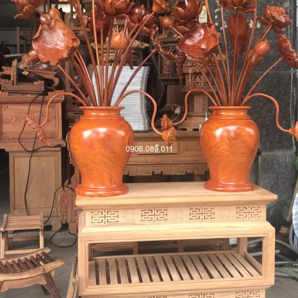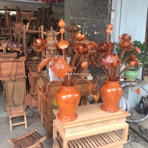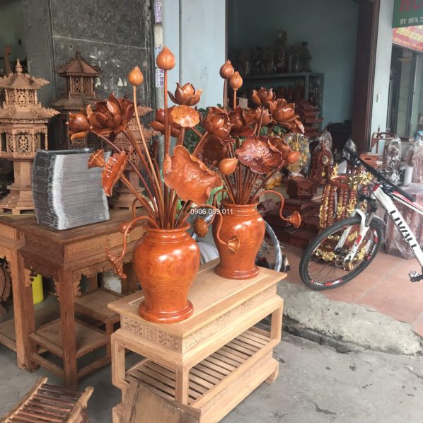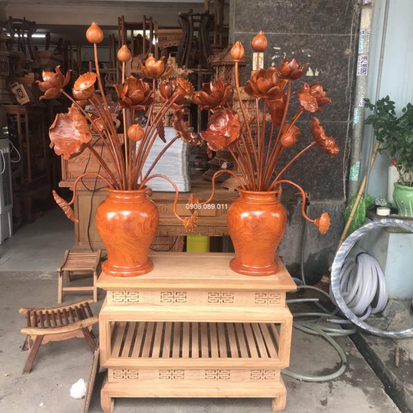 Lọ hoa sen gỗ thường được đặt trên bàn thờ vì thế người mua cũng cần chú ý số lượng cành hoa cắm trên lọ phải là số lẻ.