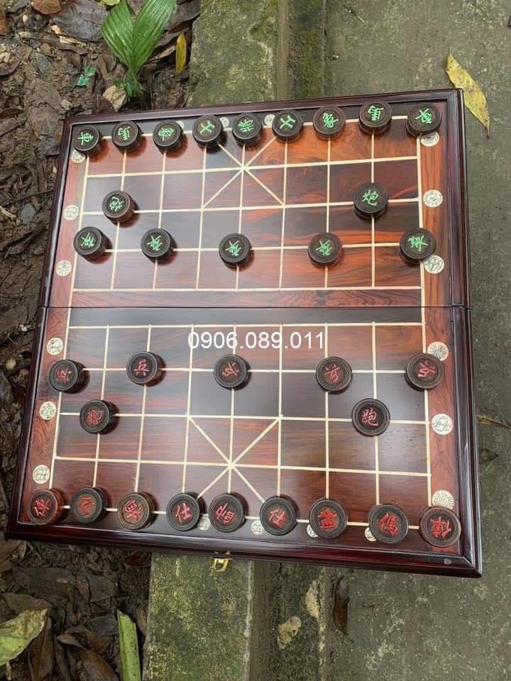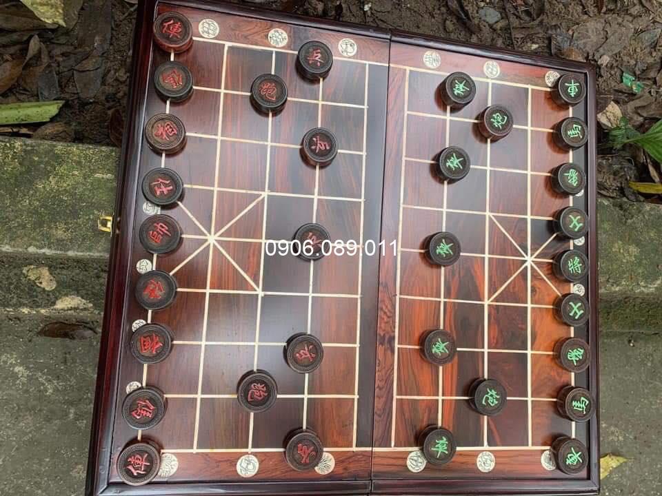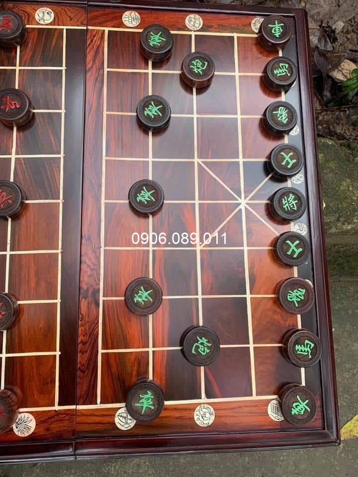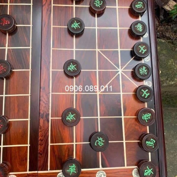 Chất liệu: bàn cờ gỗ trắc, quân cờ gỗ hương, mun