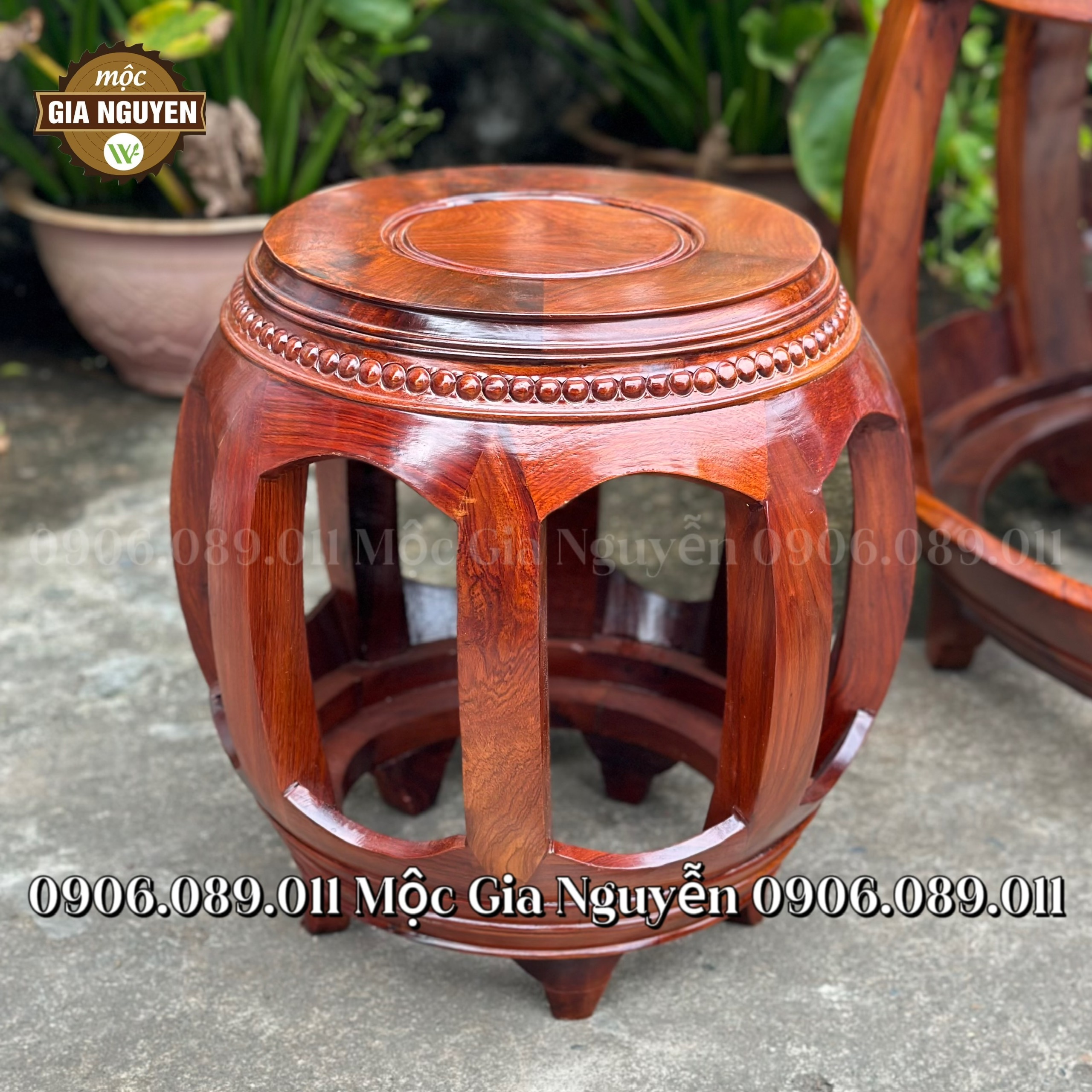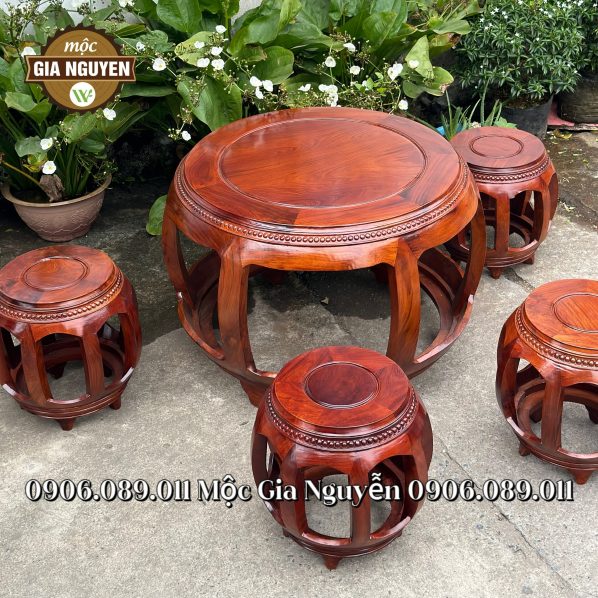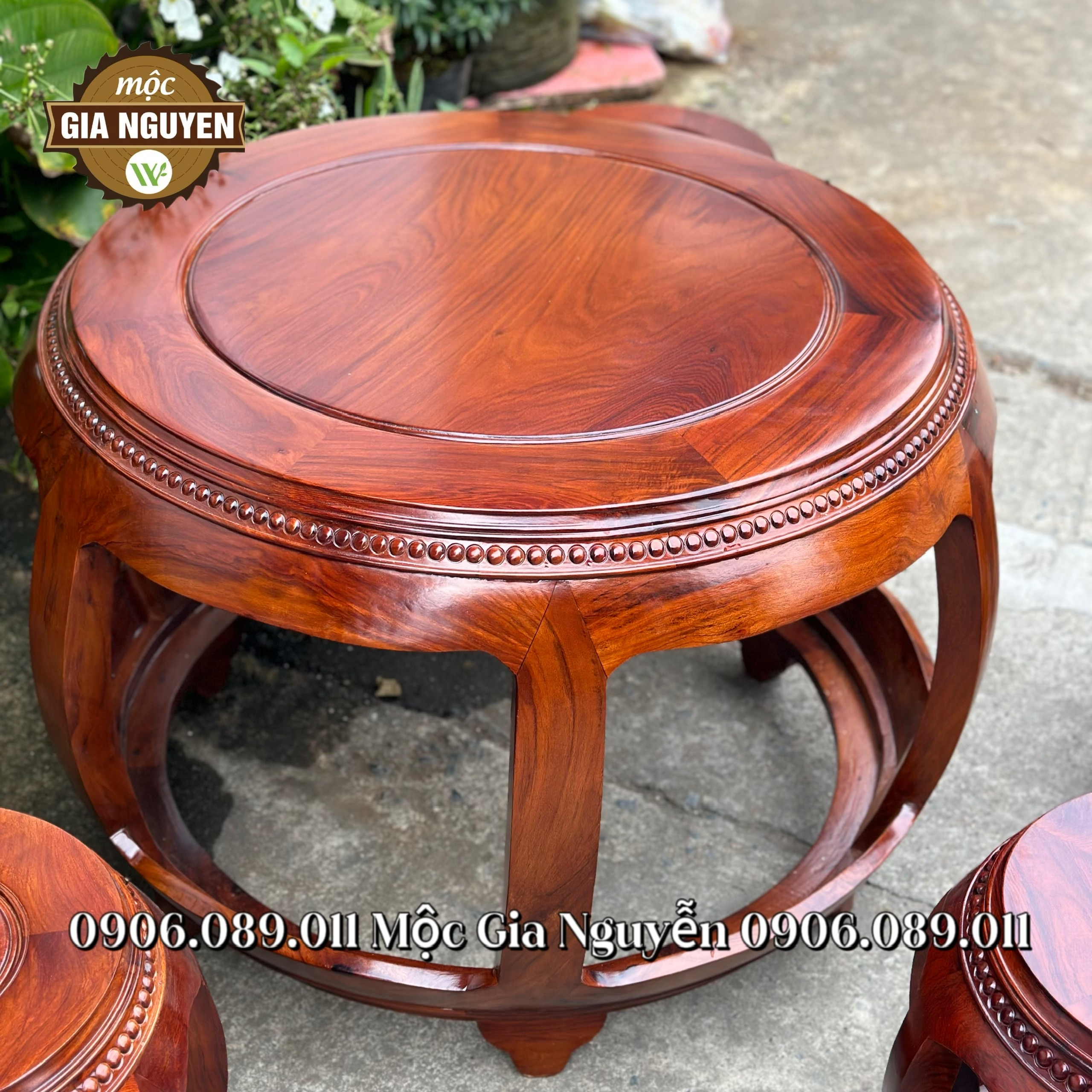 Bộ Đôn Bàn Ghế Kiểu Tròn Gỗ Hương