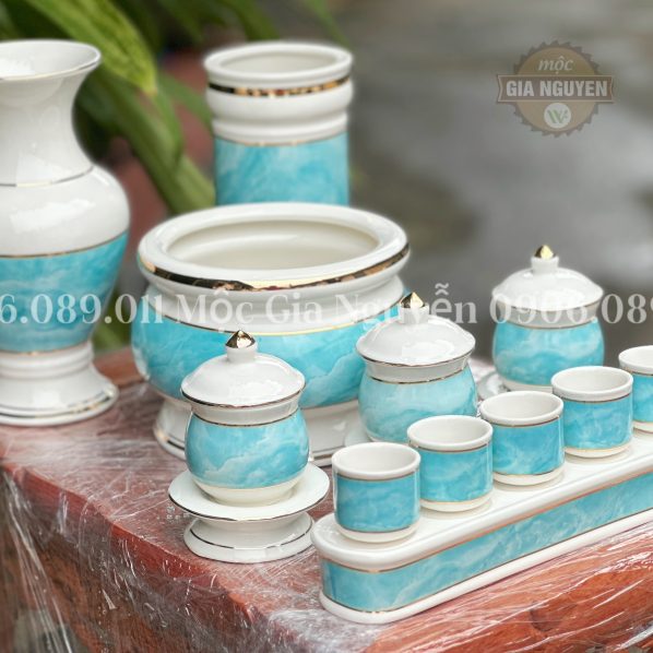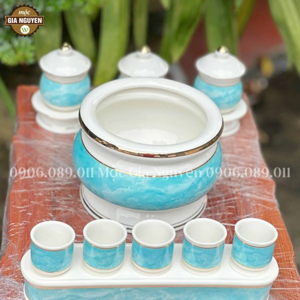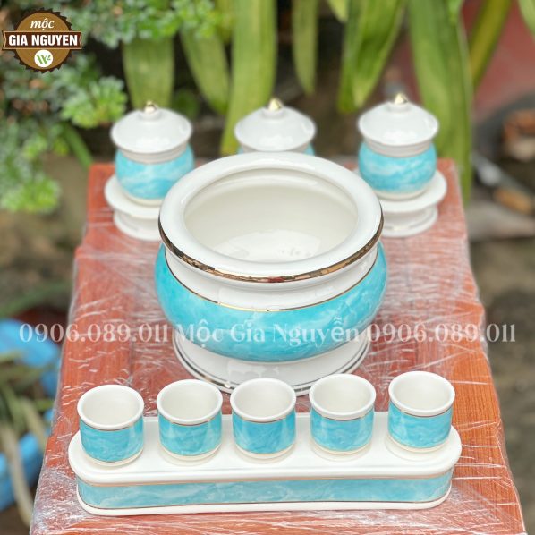 Bộ Đồ Thờ Sứ Cao cấp mang đến sự tinh hoa của nghệ thuật S và kính trọng đối với hệ thống truyền thông. Hãy để nó trở thành một thành viên quan trọng trong không gian thờ cúng của bạn, tôn vinh tổ tiên và giữ vững giá trị tâm linh.