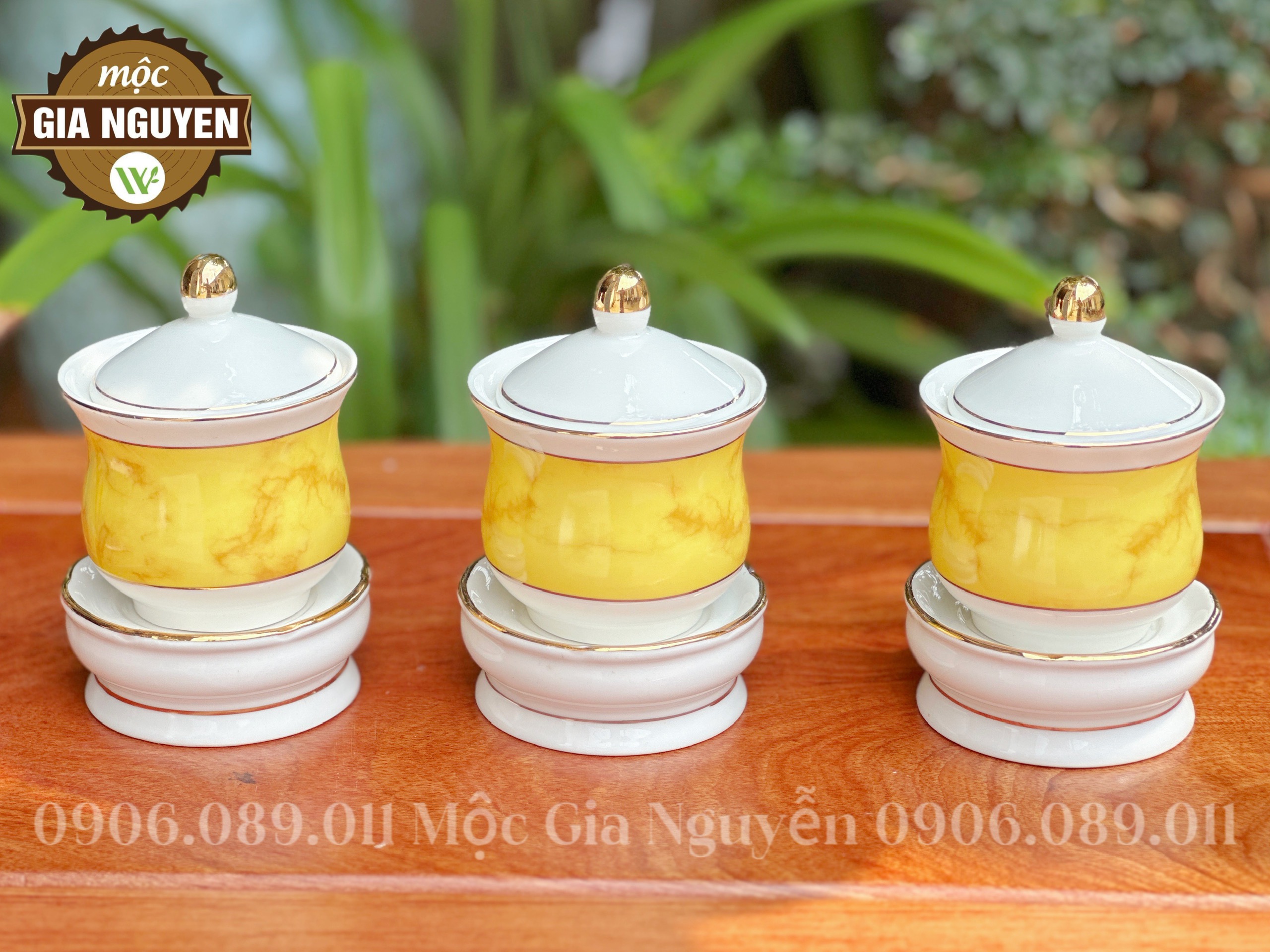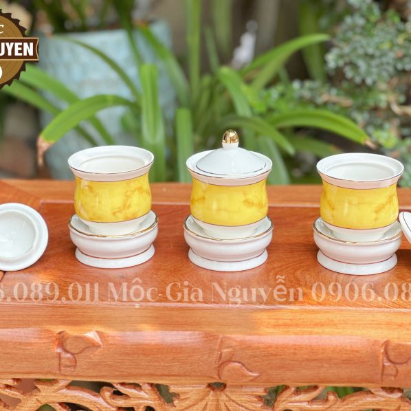 Bộ Đồ Gốm Xứ Cao Cấp là một tác phẩm nghệ thuật đích thực. Những bát đĩa, nến thánh, và các chi tiết khác được làm thủ công từ chất liệu gốm sứ cao cấp. Sự tinh xảo trong từng đường nét và hoa văn tạo nên vẻ đẹp độc đáo, khiến cho bất kỳ không gian thờ cúng nào cũng trở nên ấn tượng hơn.