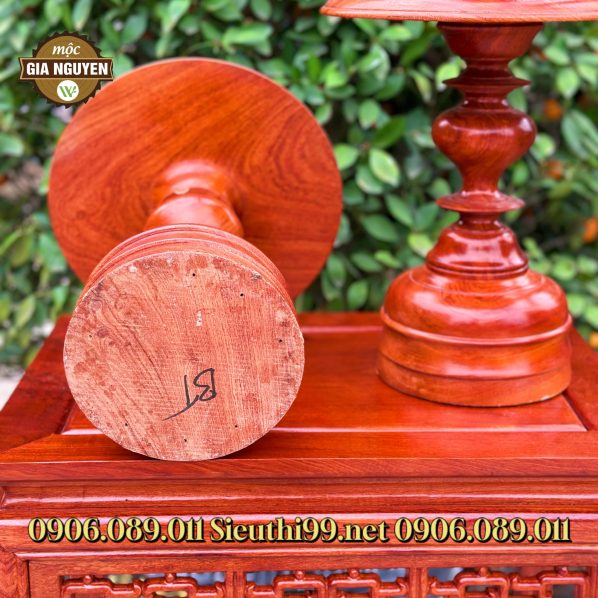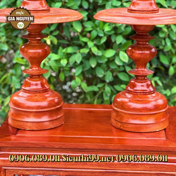 Cặp chân đèn nến gỗ hương 42cm được hoàn thiện qua nhiều công đoạn: đánh giấy nhám nhiều lần, sơn Pu nhiều lớp cho ra sản phẩm nhẵn phẳng đạt yêu cầu thẩm mỹ cao. Giữ nguyên được vân gỗ rất đẹp.