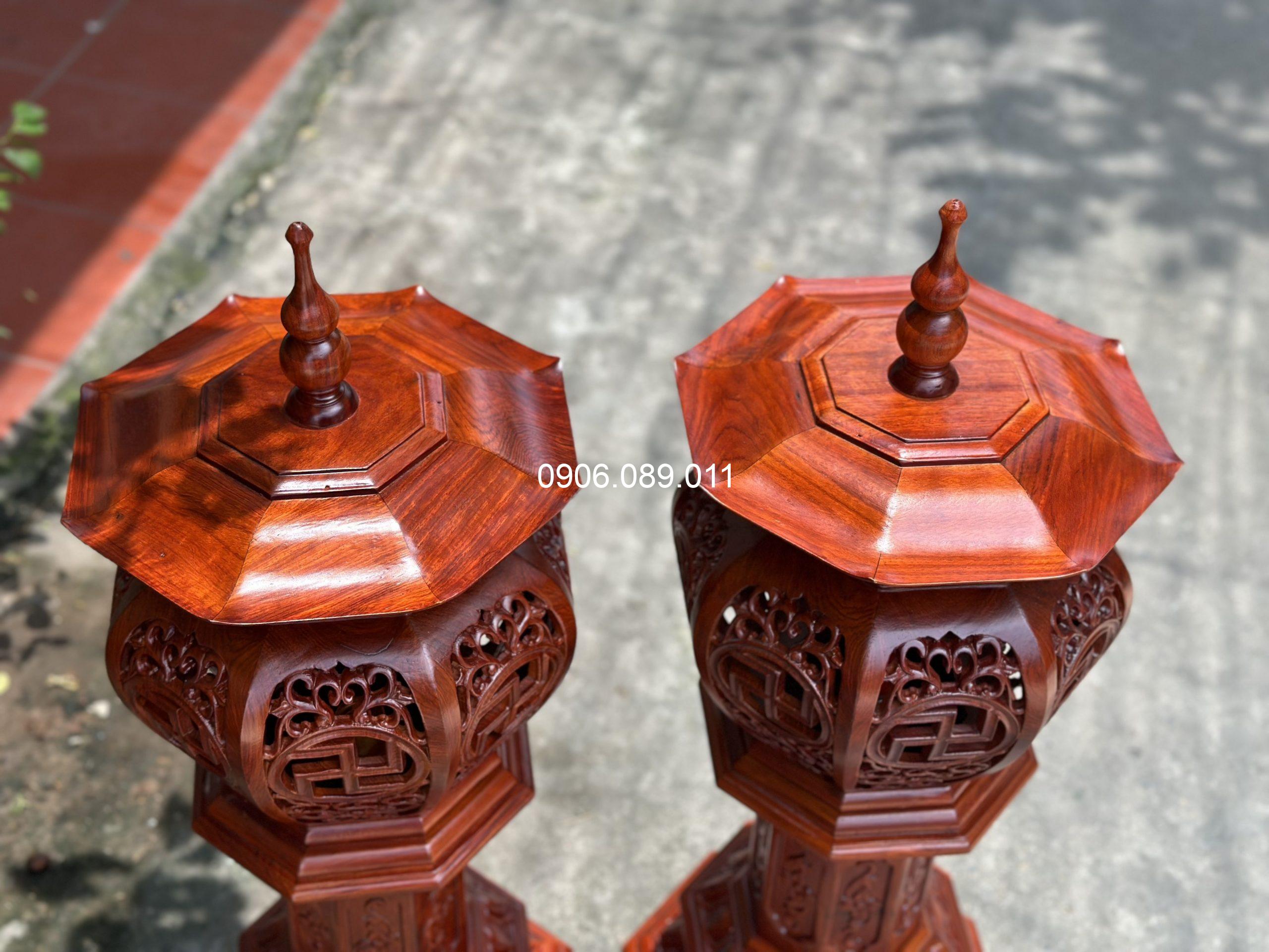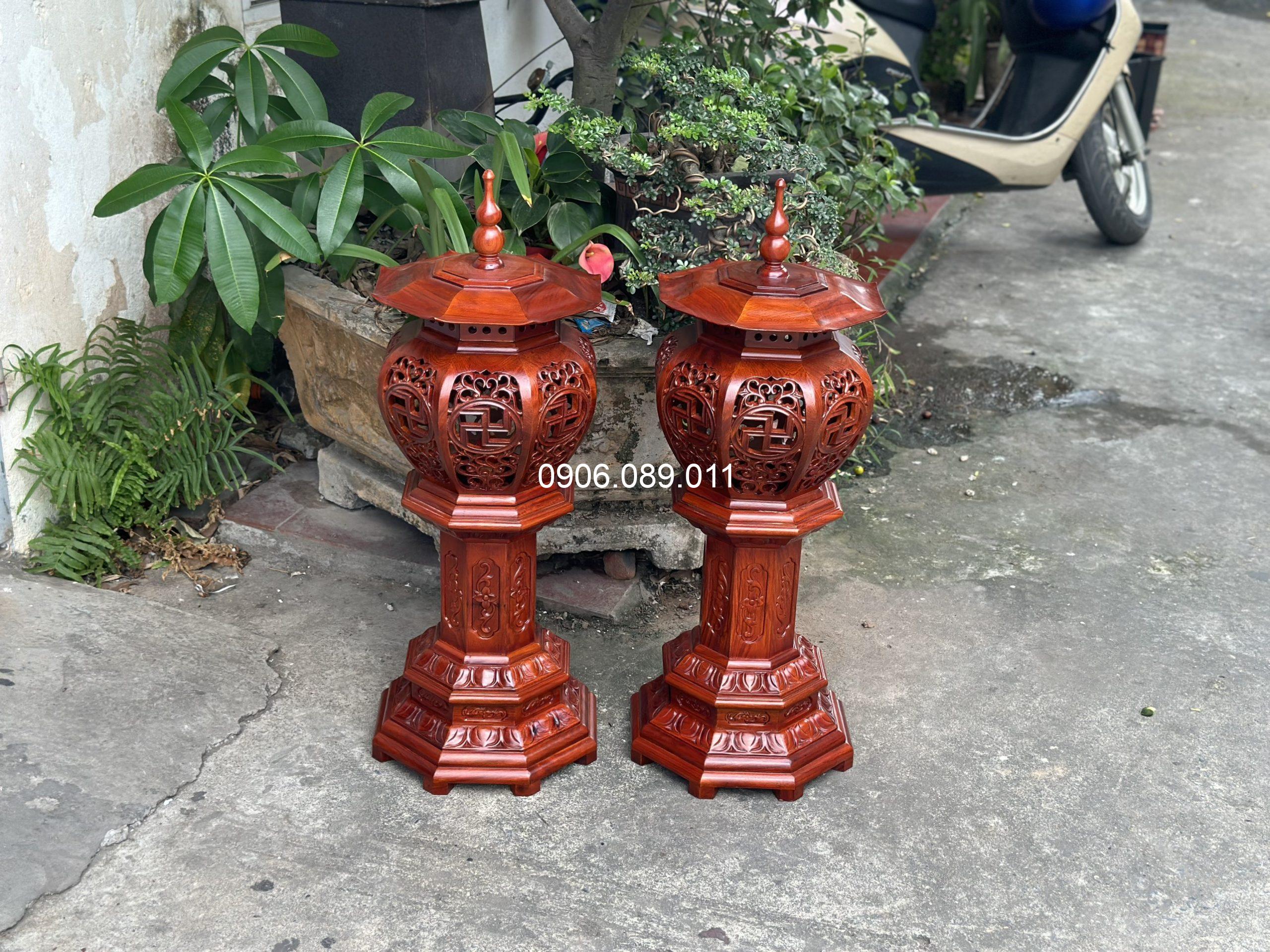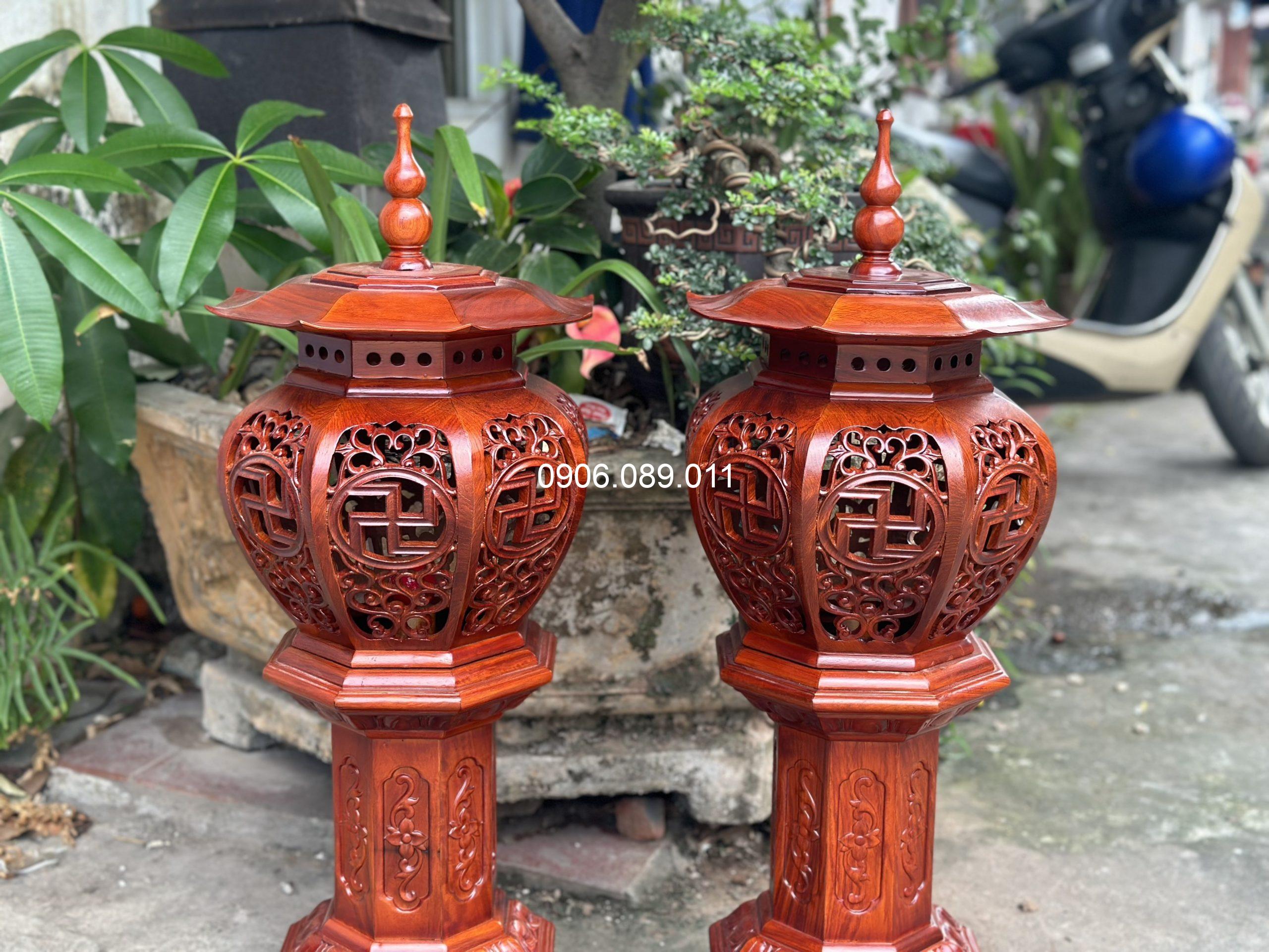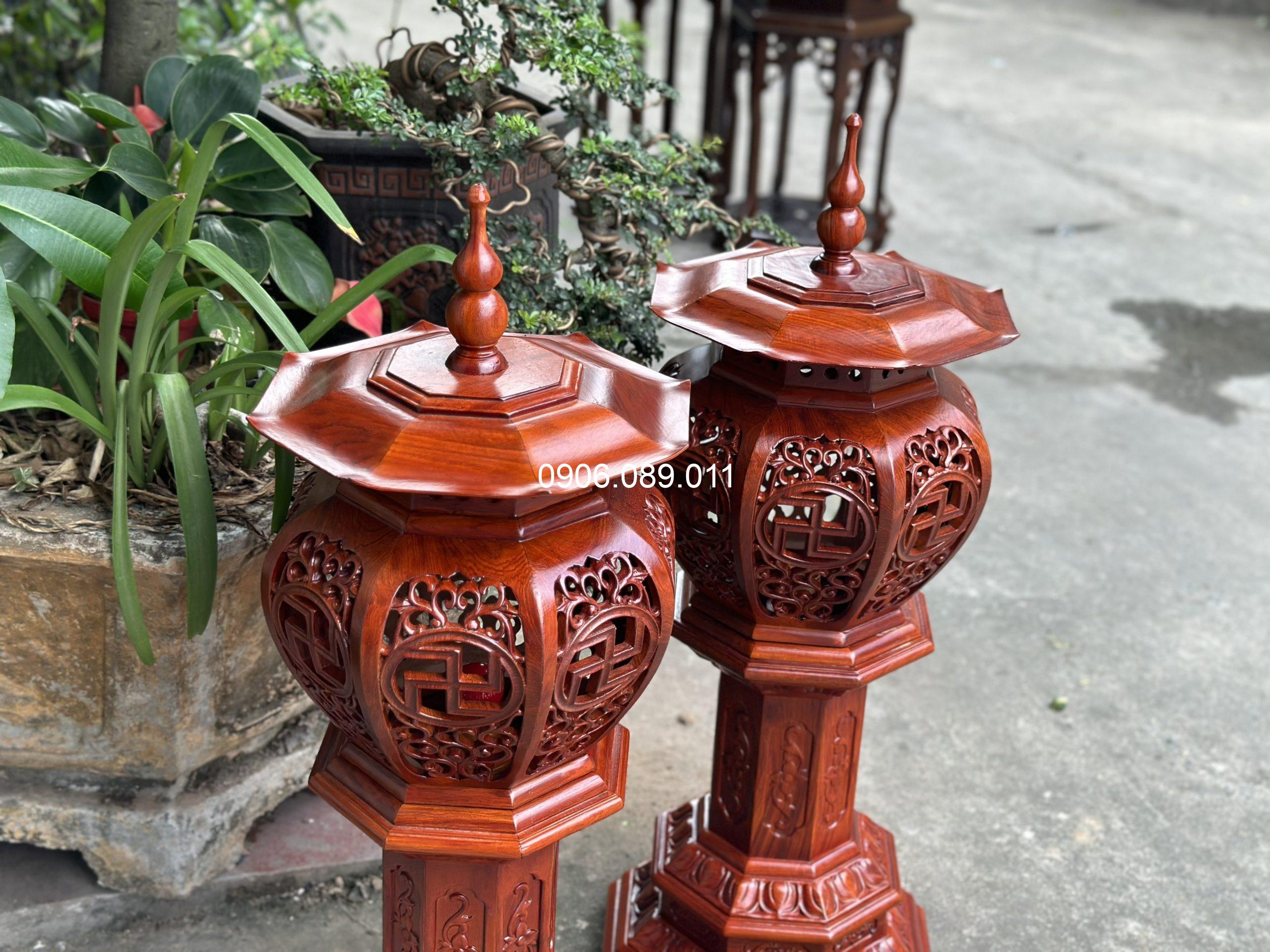 Đèn thờ bát giác gỗ hương Đồng Kỵ cao cấp 80cm