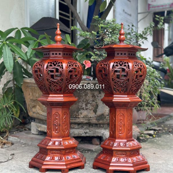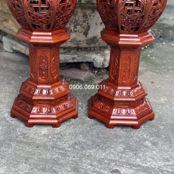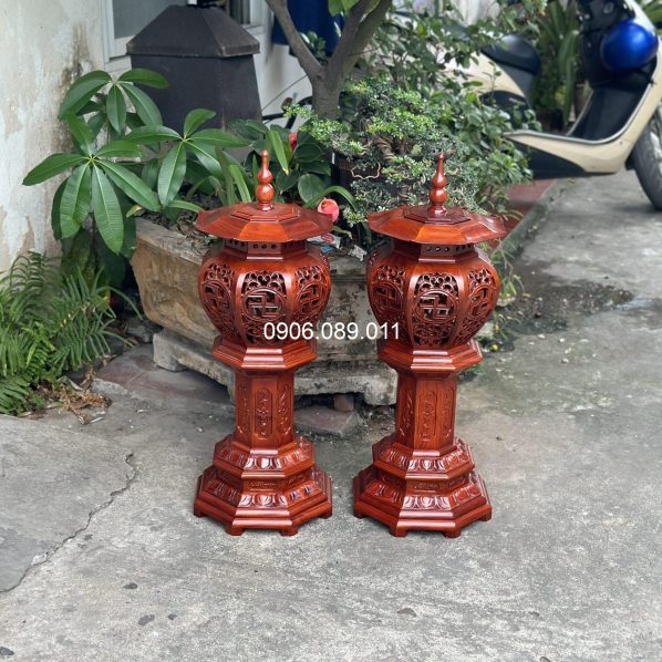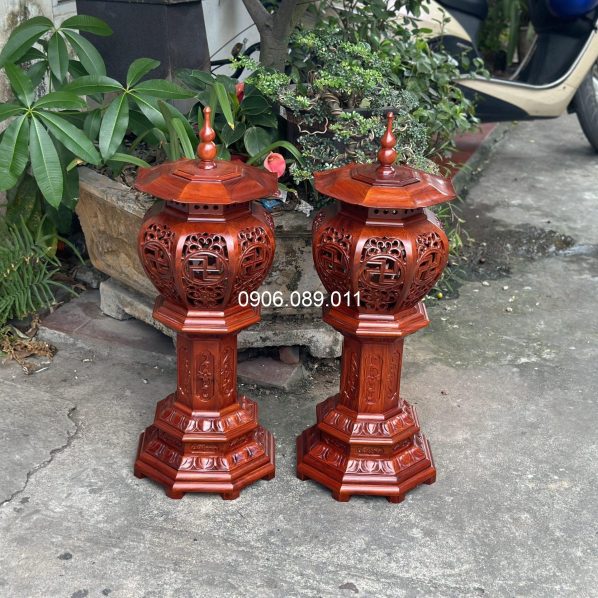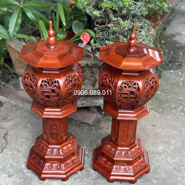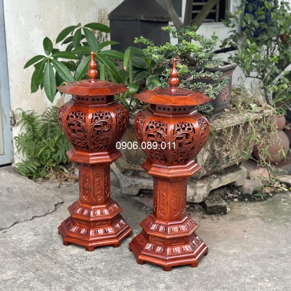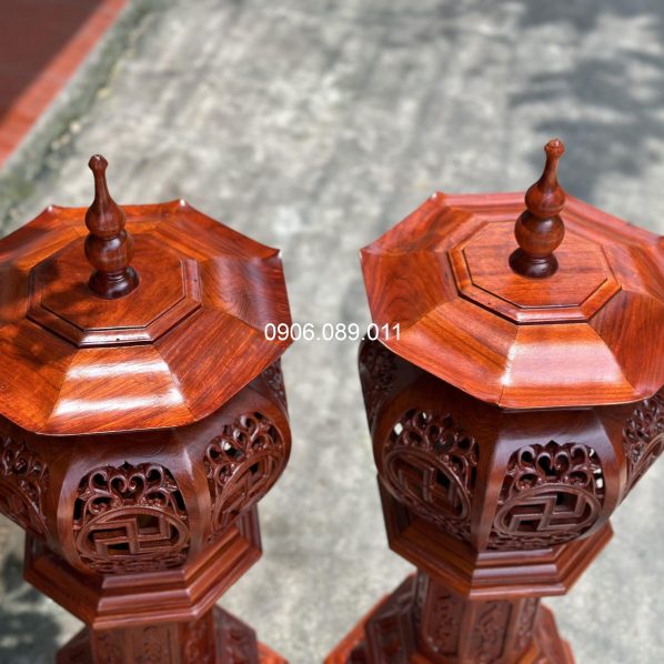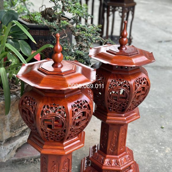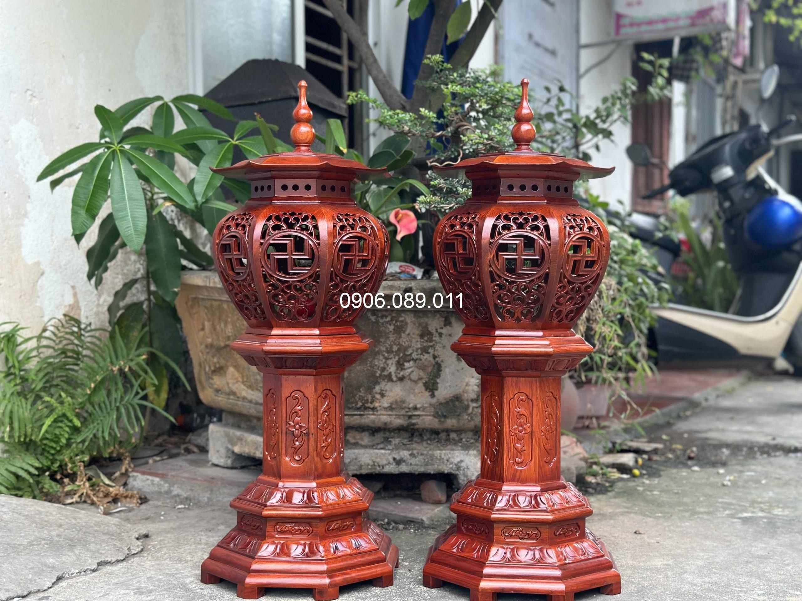 Đèn thờ bát giác gỗ hương Đồng Kỵ cao cấp 80cm