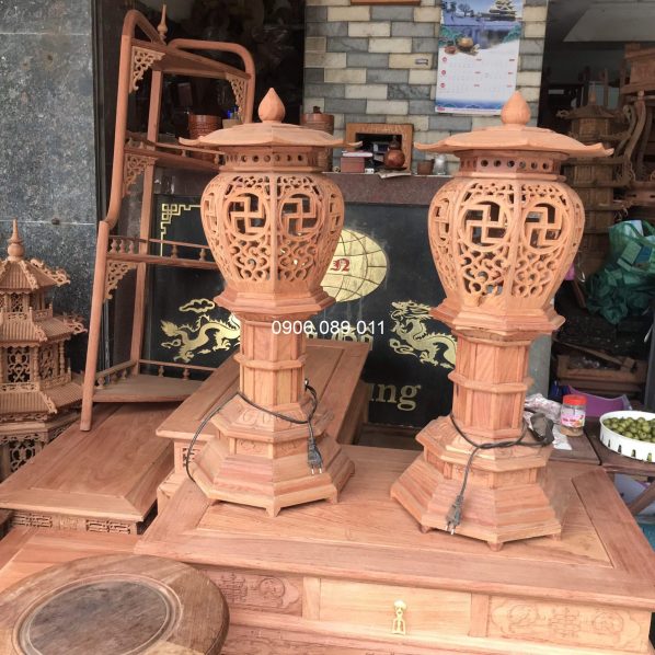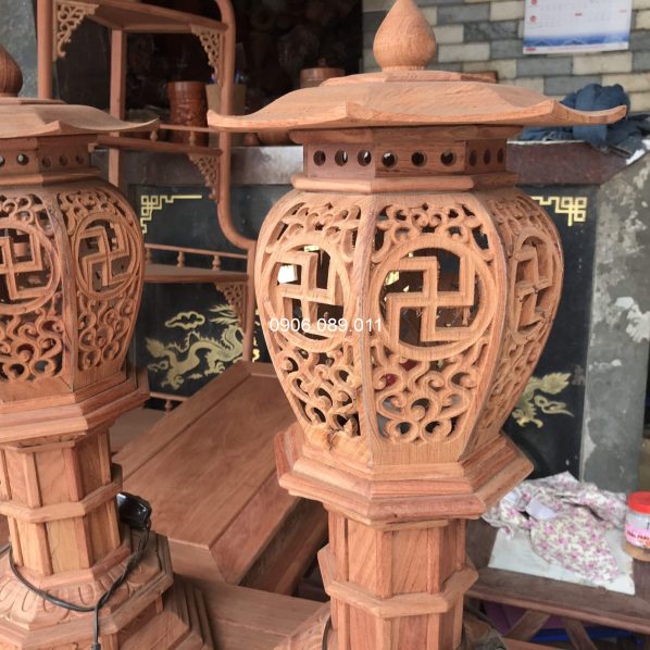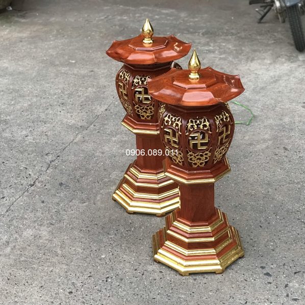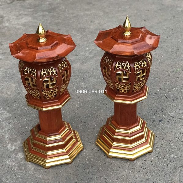 Đèn thờ bát giác gỗ hương ( không dát vàng )