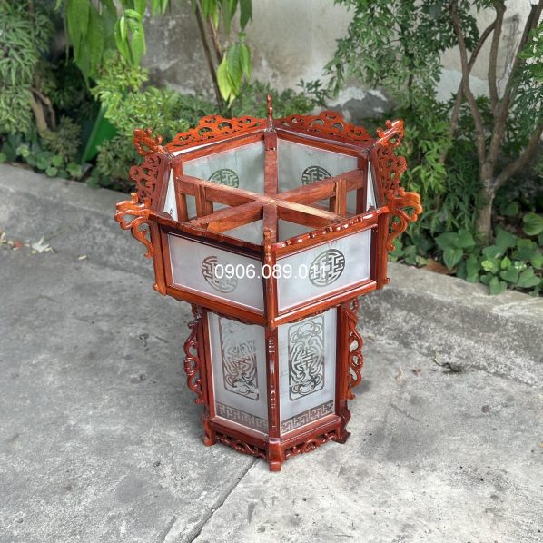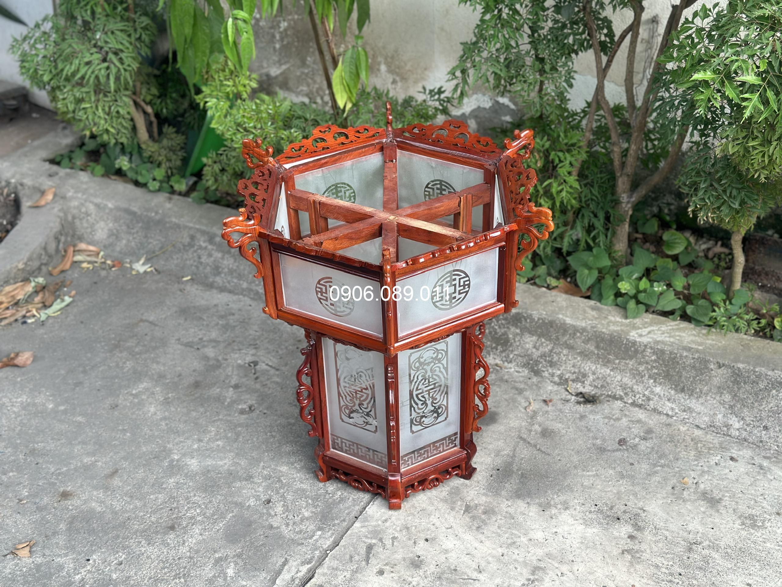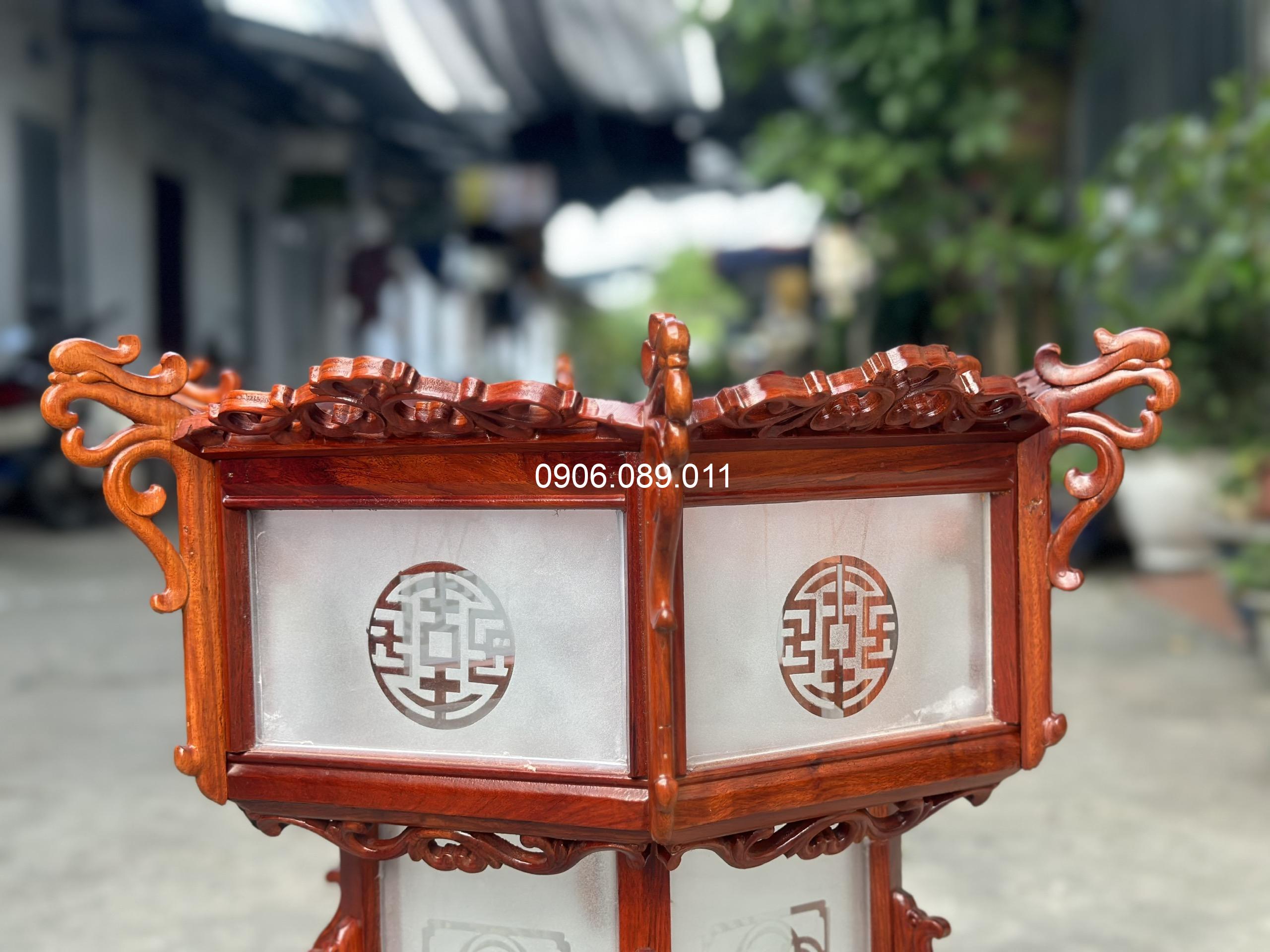 Đèn thờ gỗ hương mặt kính Đồng Kỵ cao 45cm