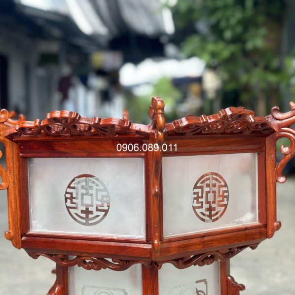 Đèn thờ gỗ hương được kết hợp với mặt kính thiết kế sang trọng và chữ thọ được in trên mặt kính sắc nét tạo thêm sự tinh tế và nổi bật cho sản phẩm.