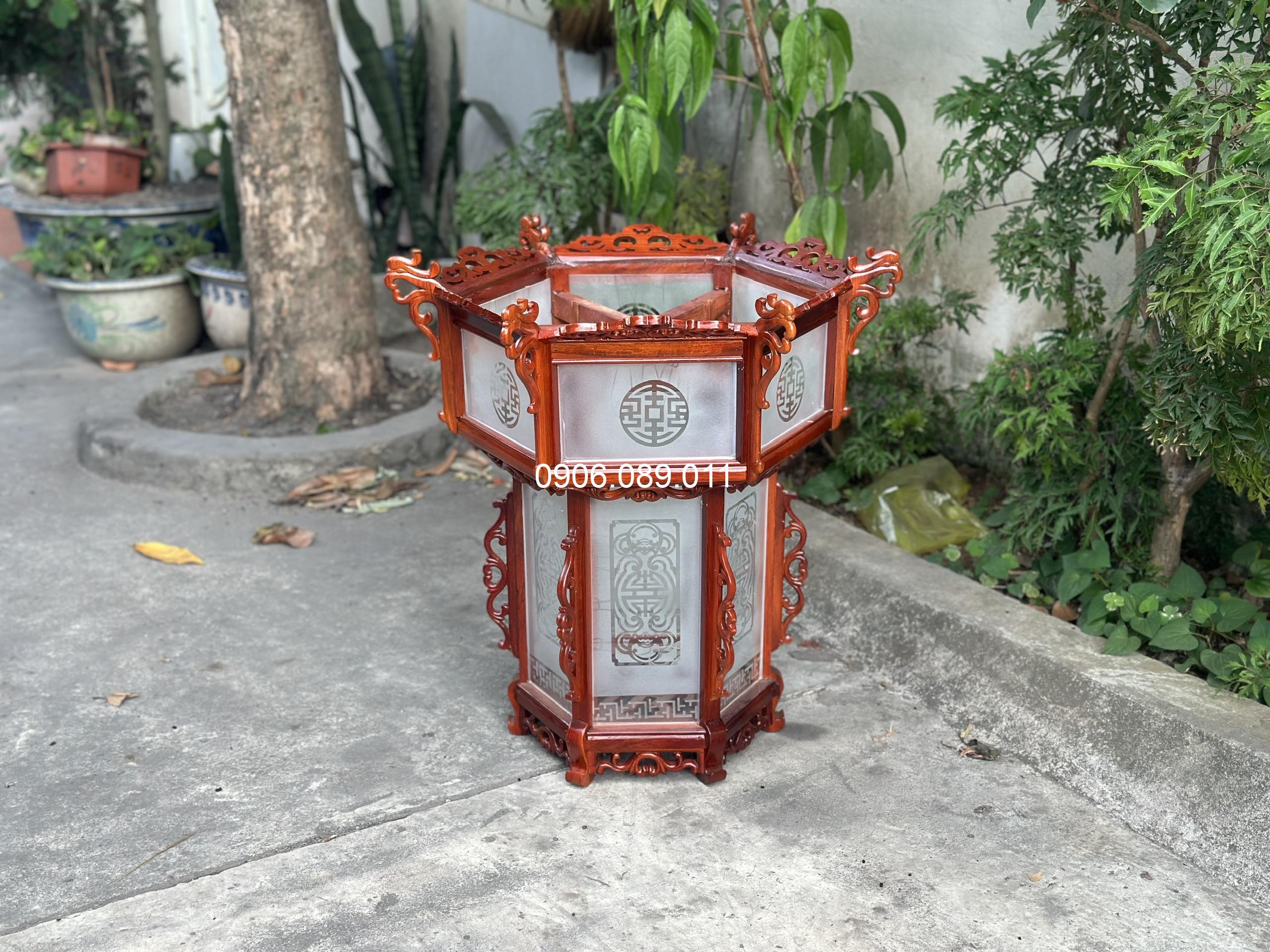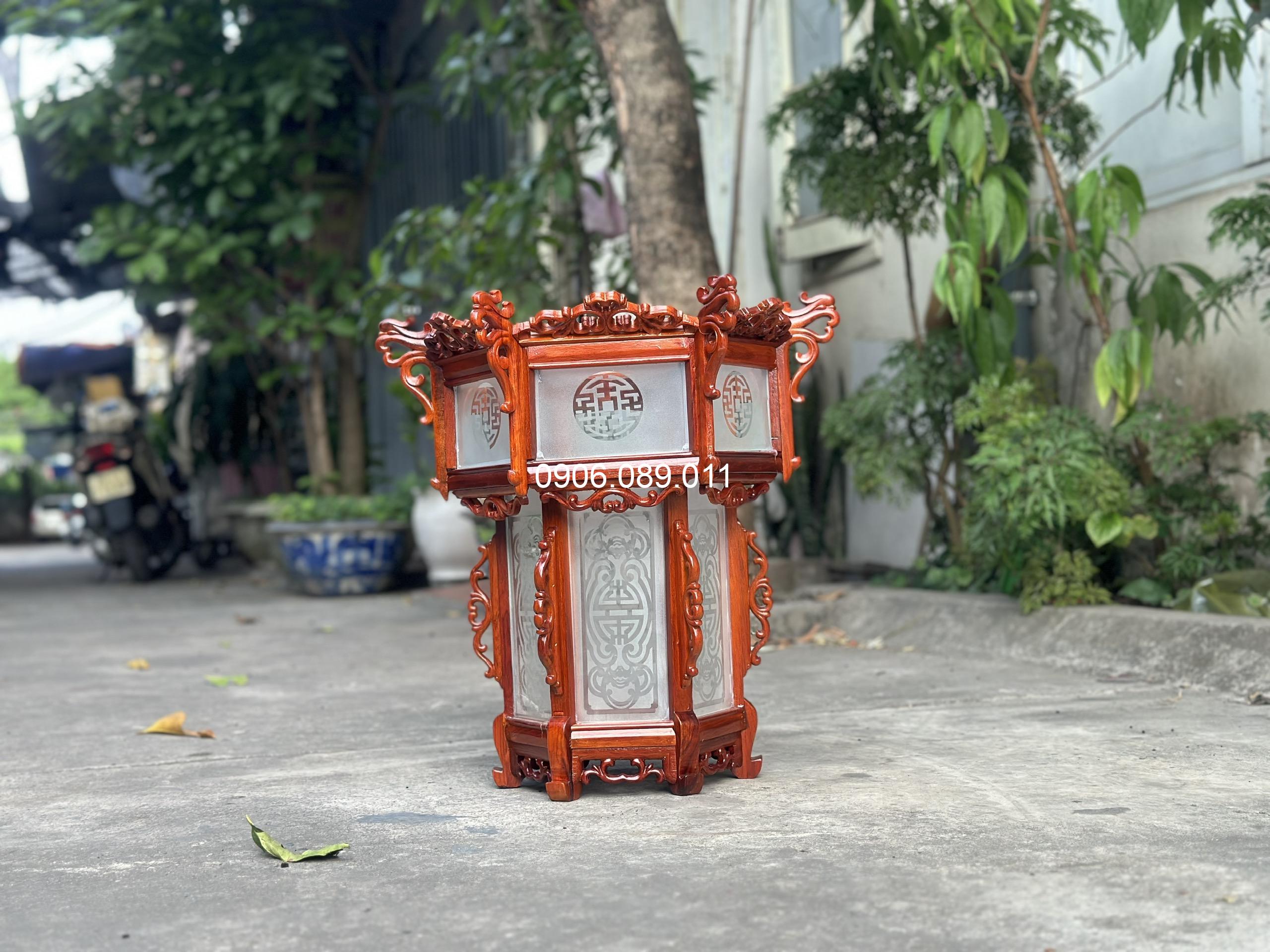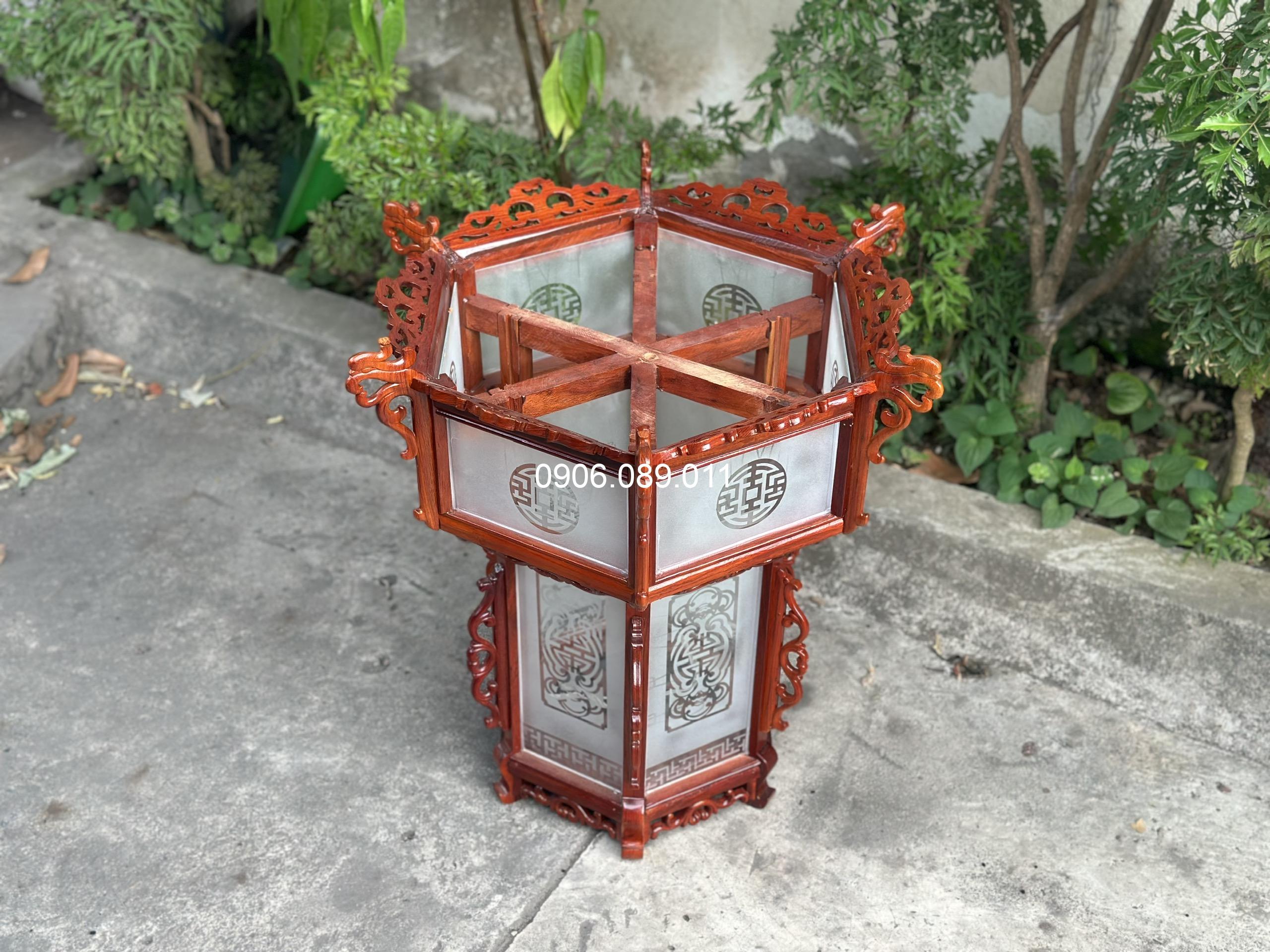 Đèn thờ gỗ hương mặt kính Đồng Kỵ cao 55cm