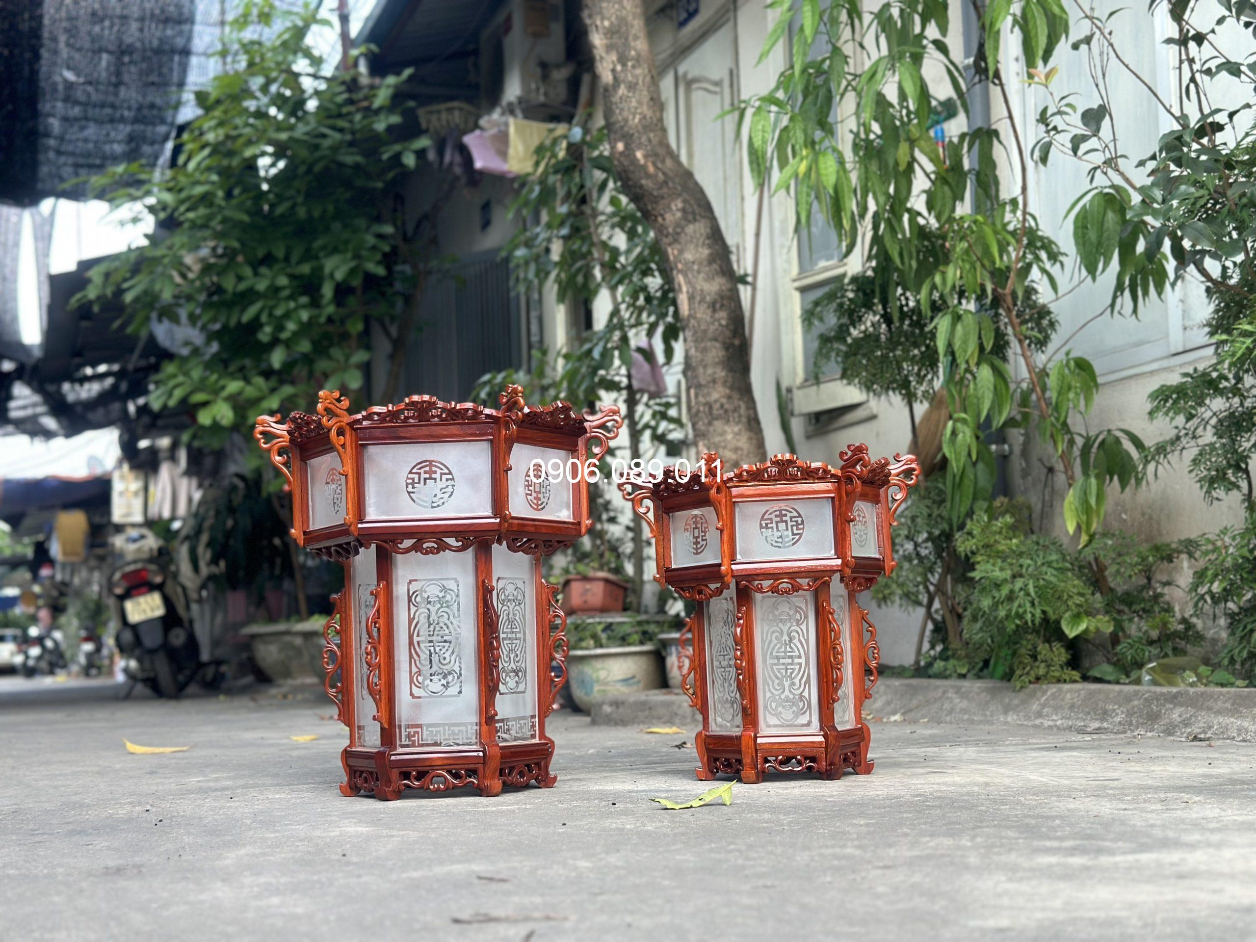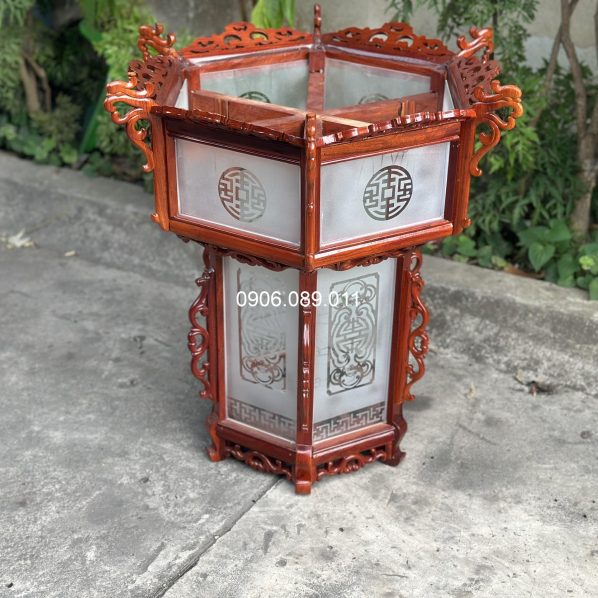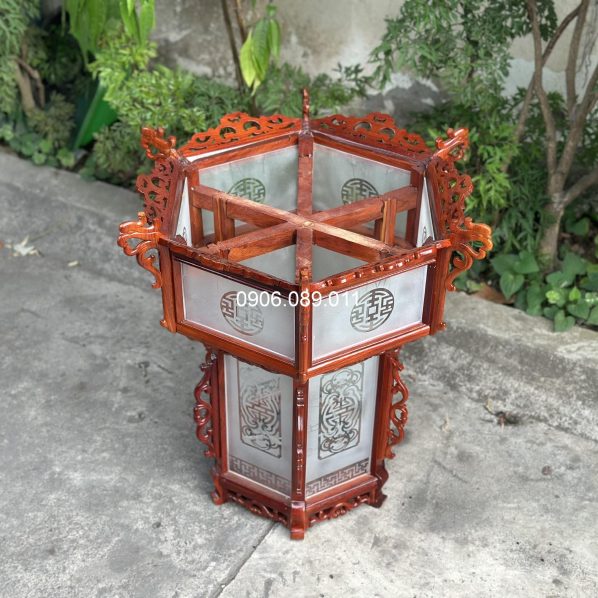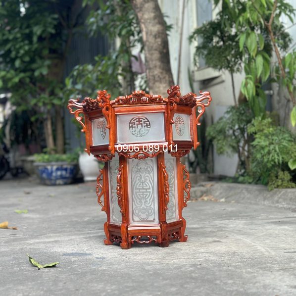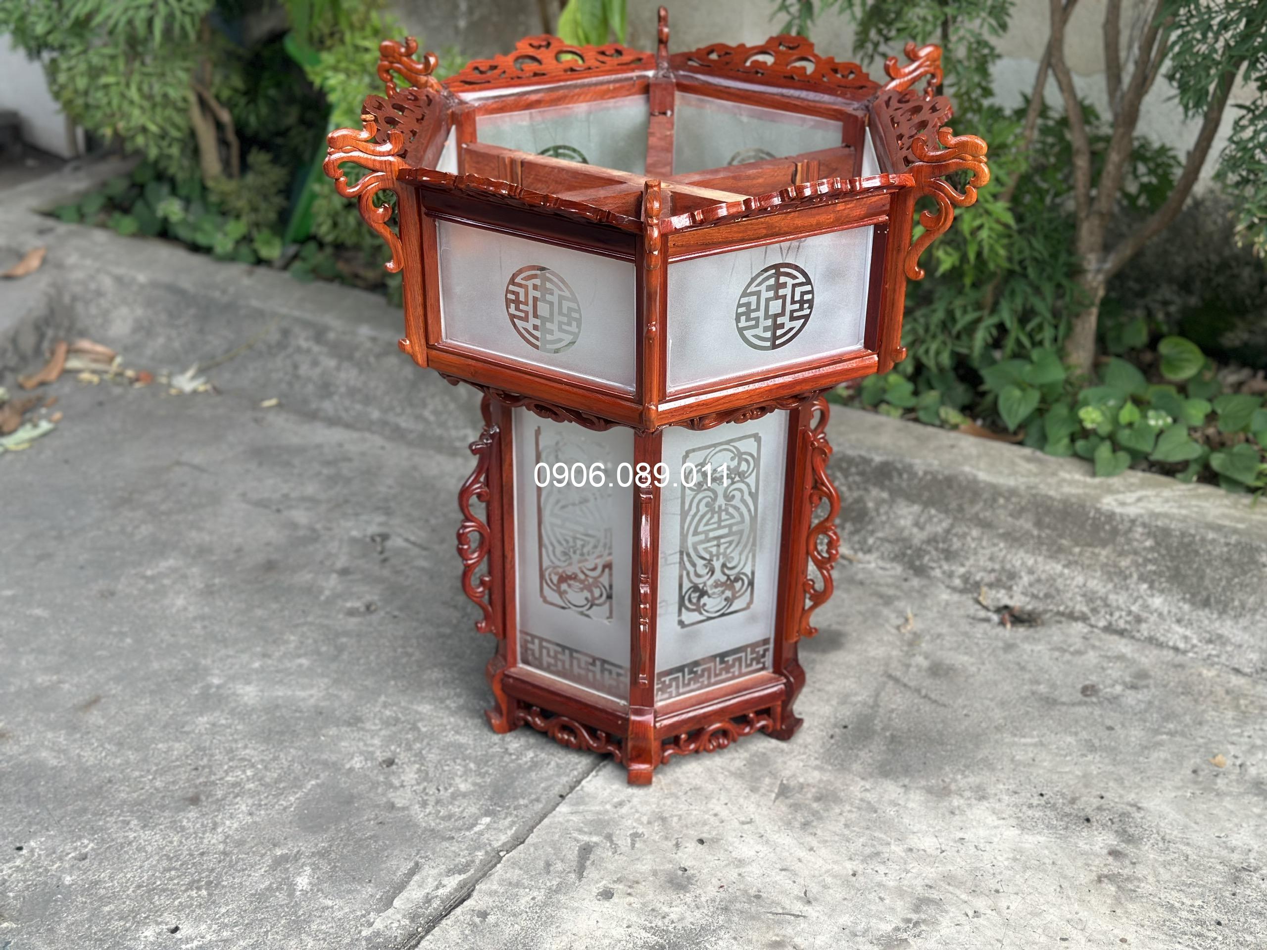 Đèn thờ gỗ hương mặt kính Đồng Kỵ cao 55cm