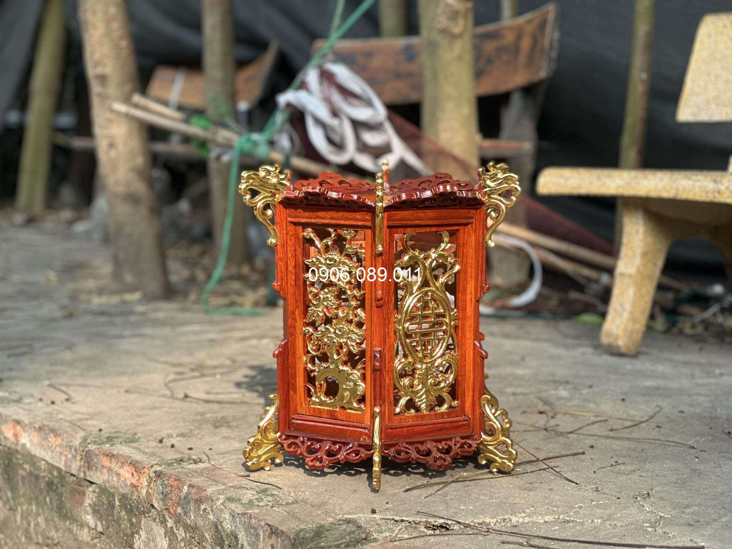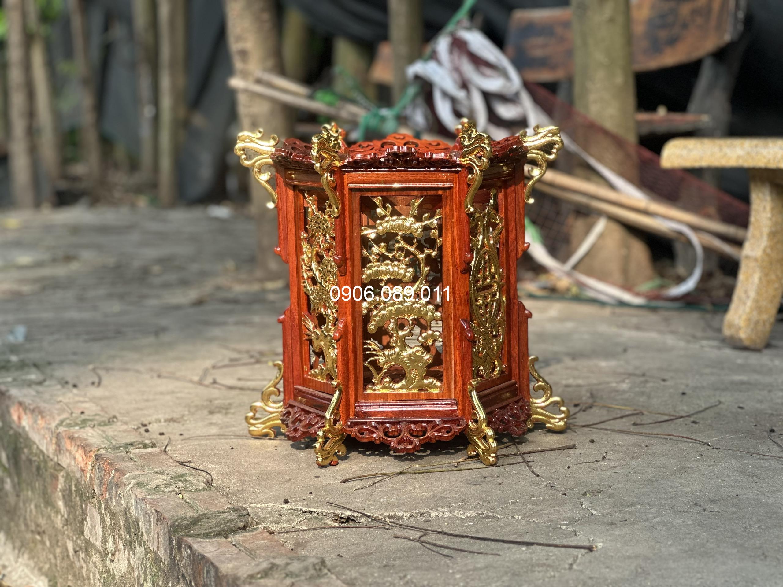 - Đèn thờ được phun màu gỗ tư nhiên, phun sơn bóng PU và dát vàng công nghiệp.