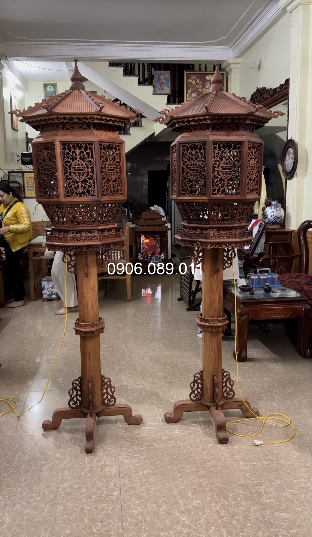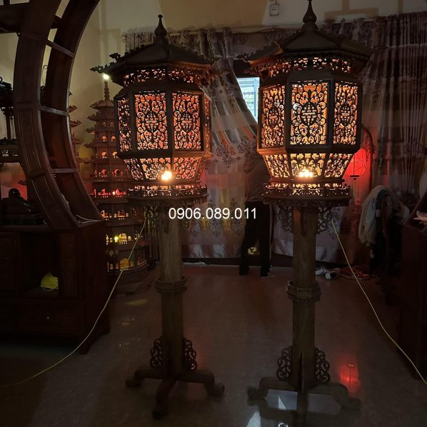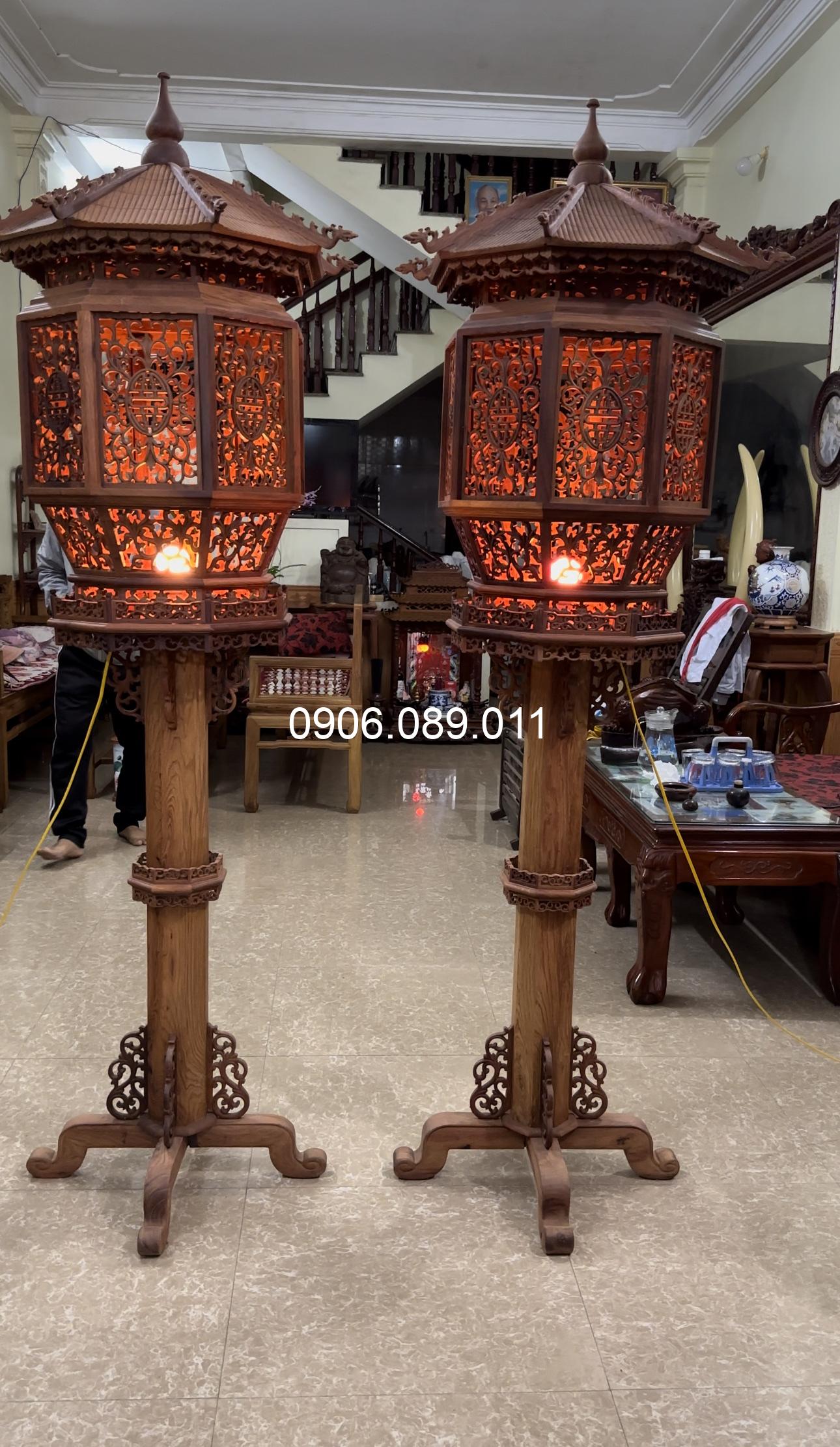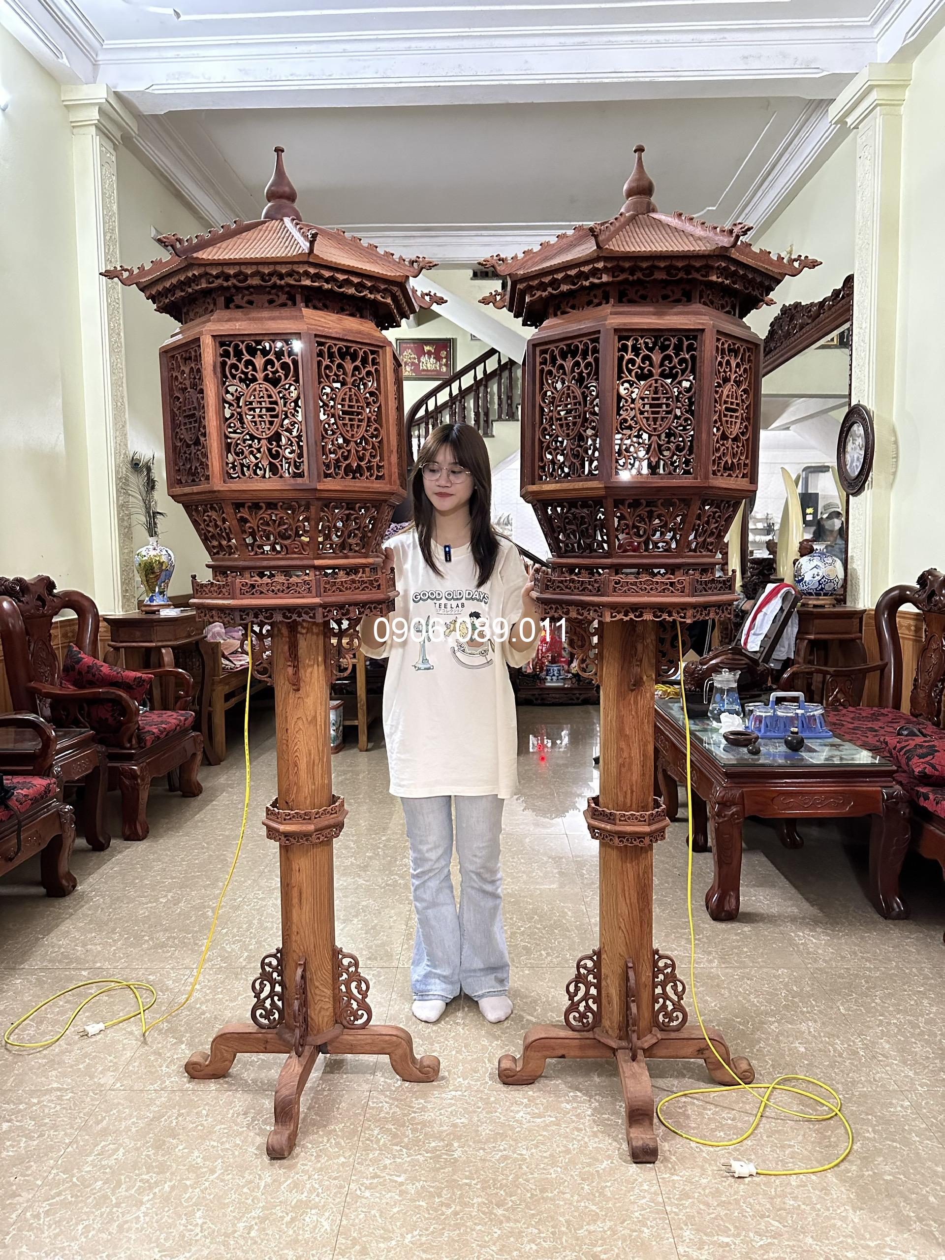 - Chân đèn trang trí là cột gỗ hương nguyên khố, rất đặc và chắn chắn. Tạo cho đèn thờ trở nên chắc chắn và đẹp hơn.