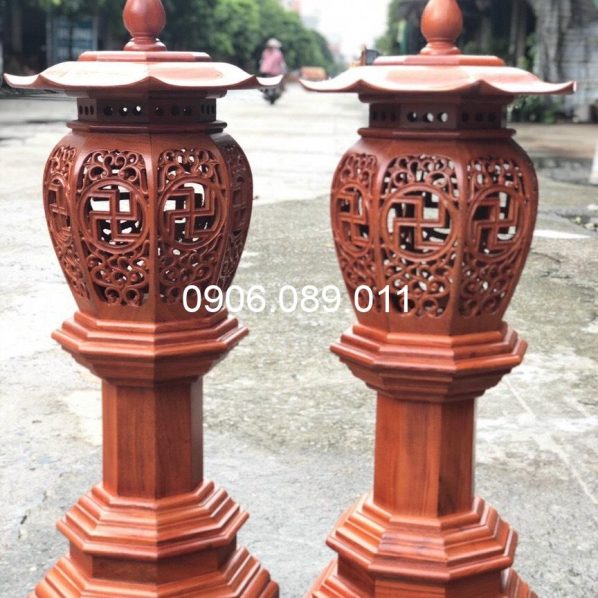 Đèn thờ có thiết kế hình bát giác độc đáo, tượng trưng cho sự hài hòa và cân đối. Mỗi mặt của đèn được chạm khắc hoa văn truyền thống, mang đậm nét văn hóa Á Đông.