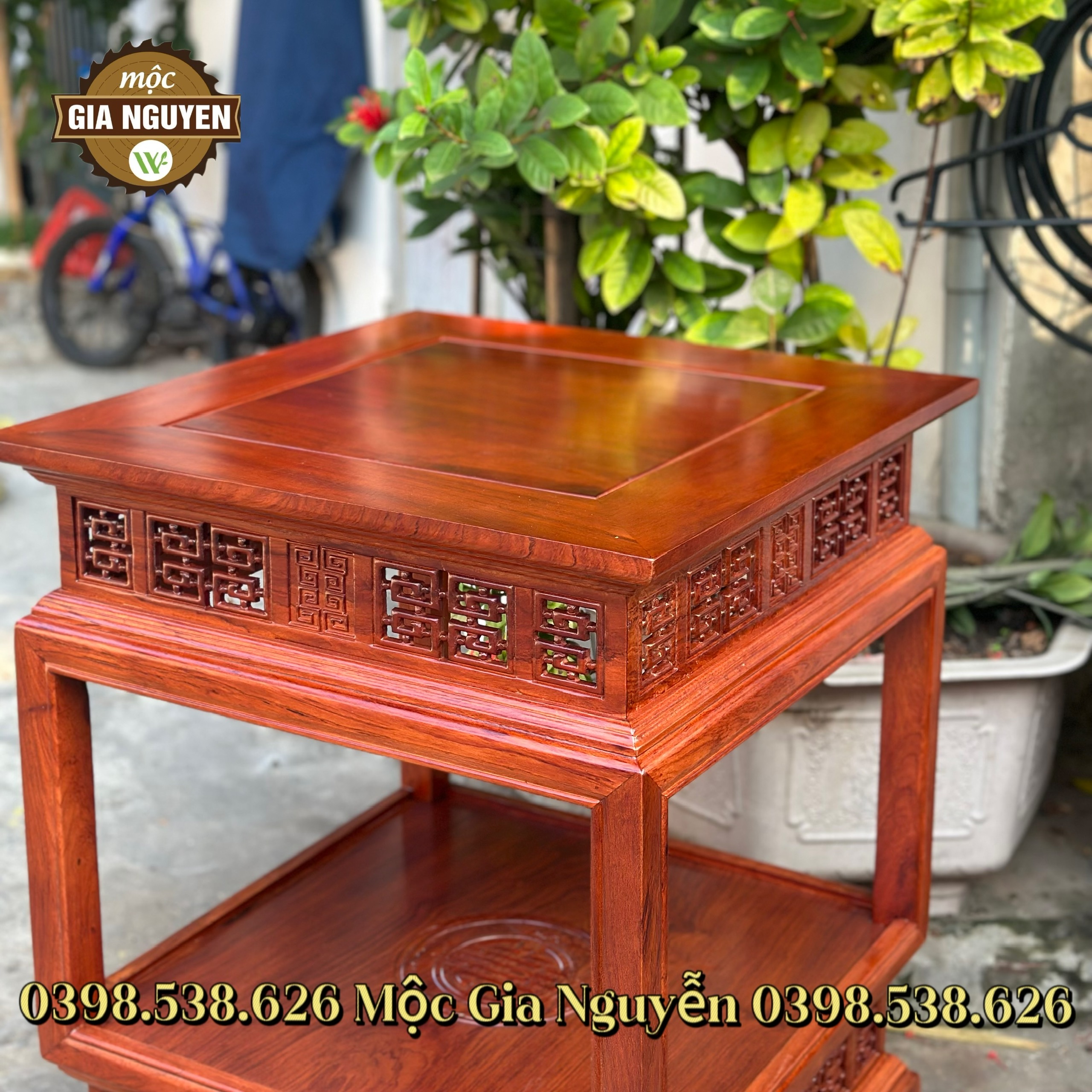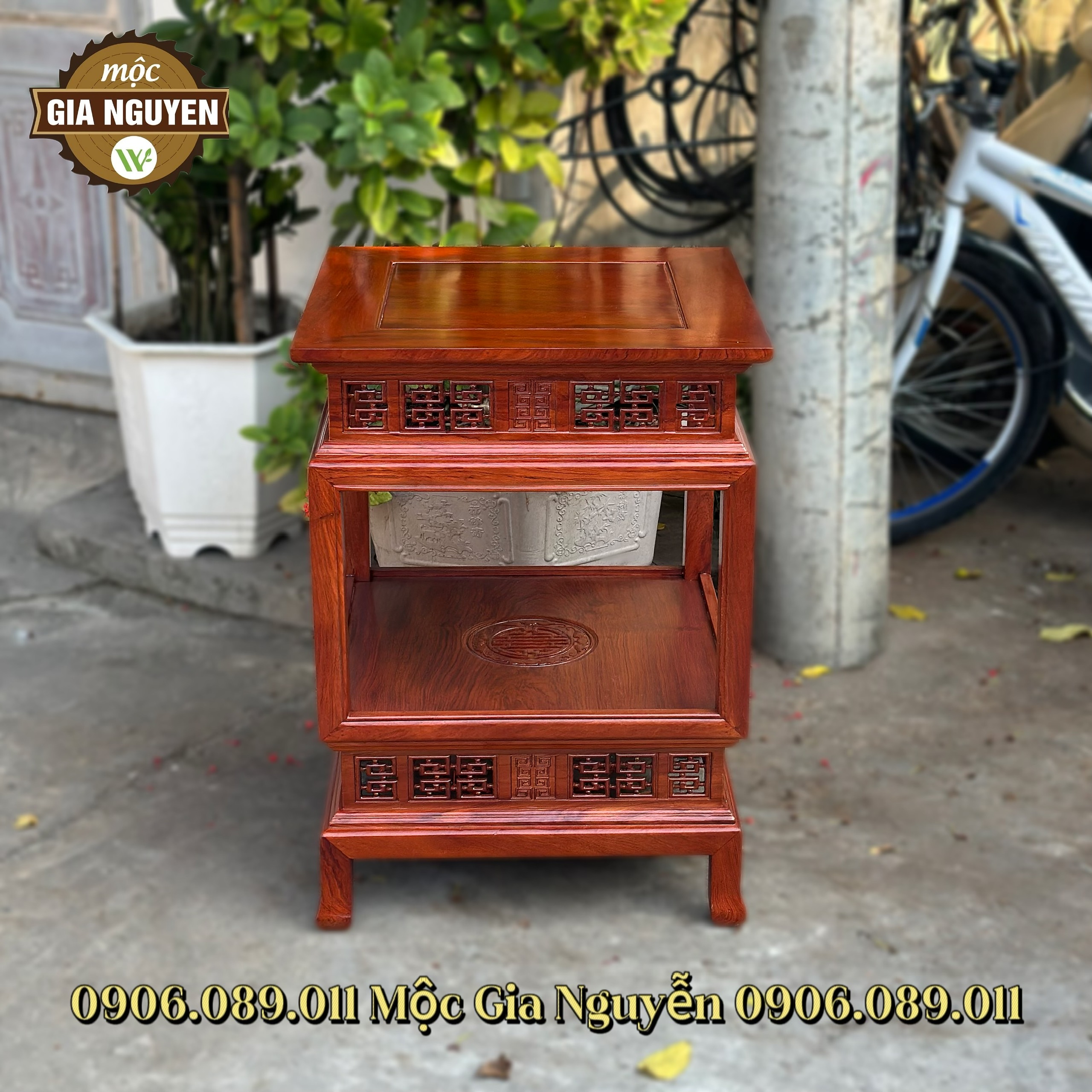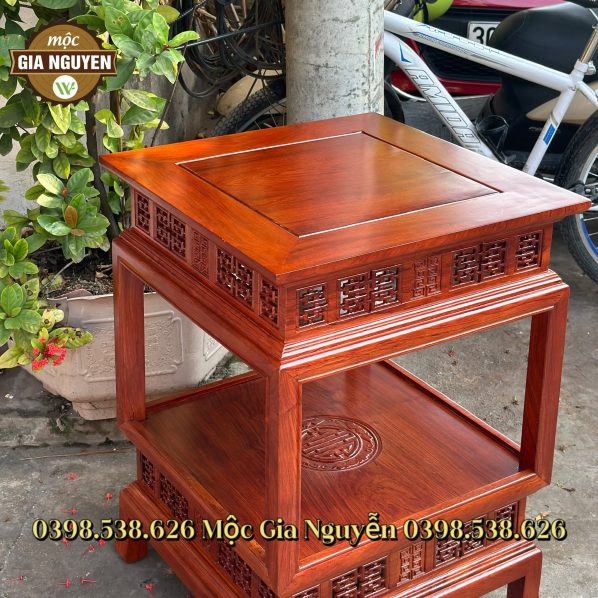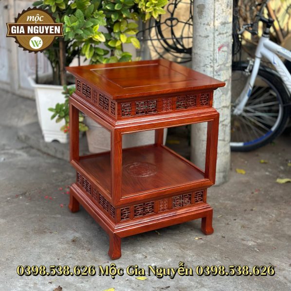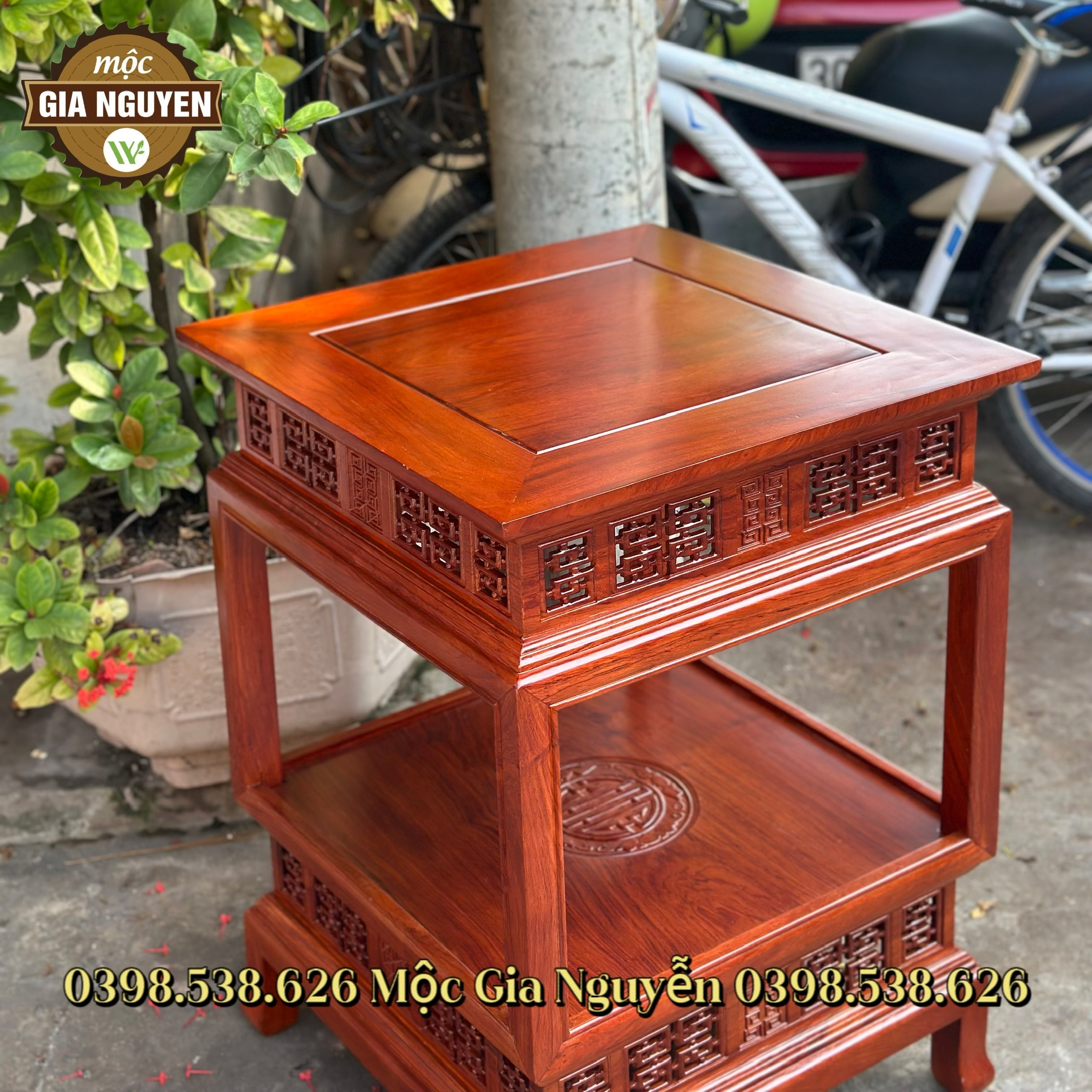 Đôn đèn gỗ hương được thiết kế đơn giản nhưng vẫn sang trọng và đẳng cấp. Với thiết kế 2 tầng giúp gia chủ có thể kê thêm nhiều vật phẩm hơn nữa.