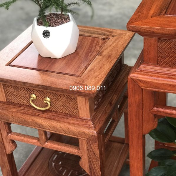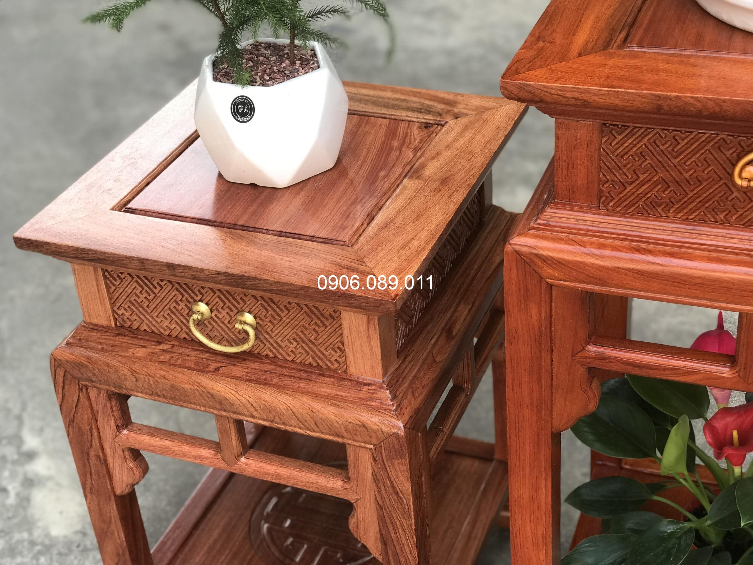 - Đôn gỗ ngăn kéo chạm gấm được làm chất liệu gỗ hương cao cấp.