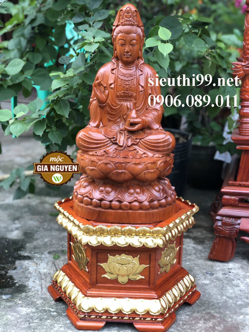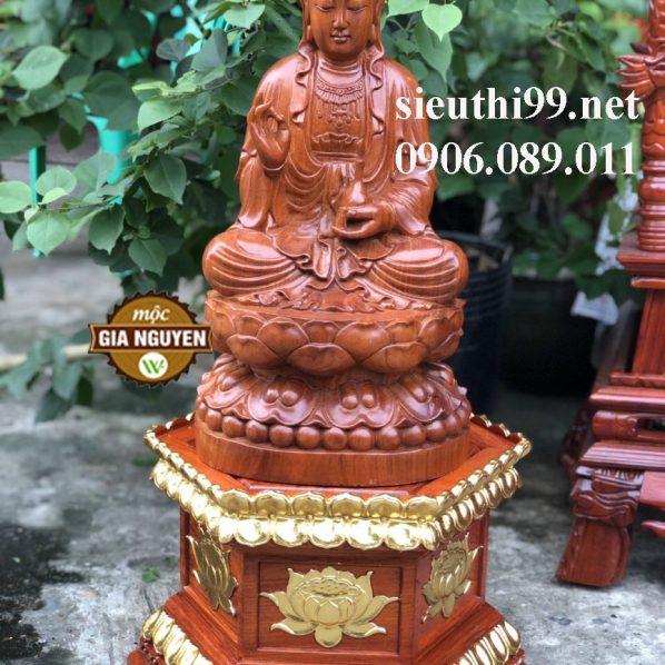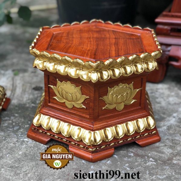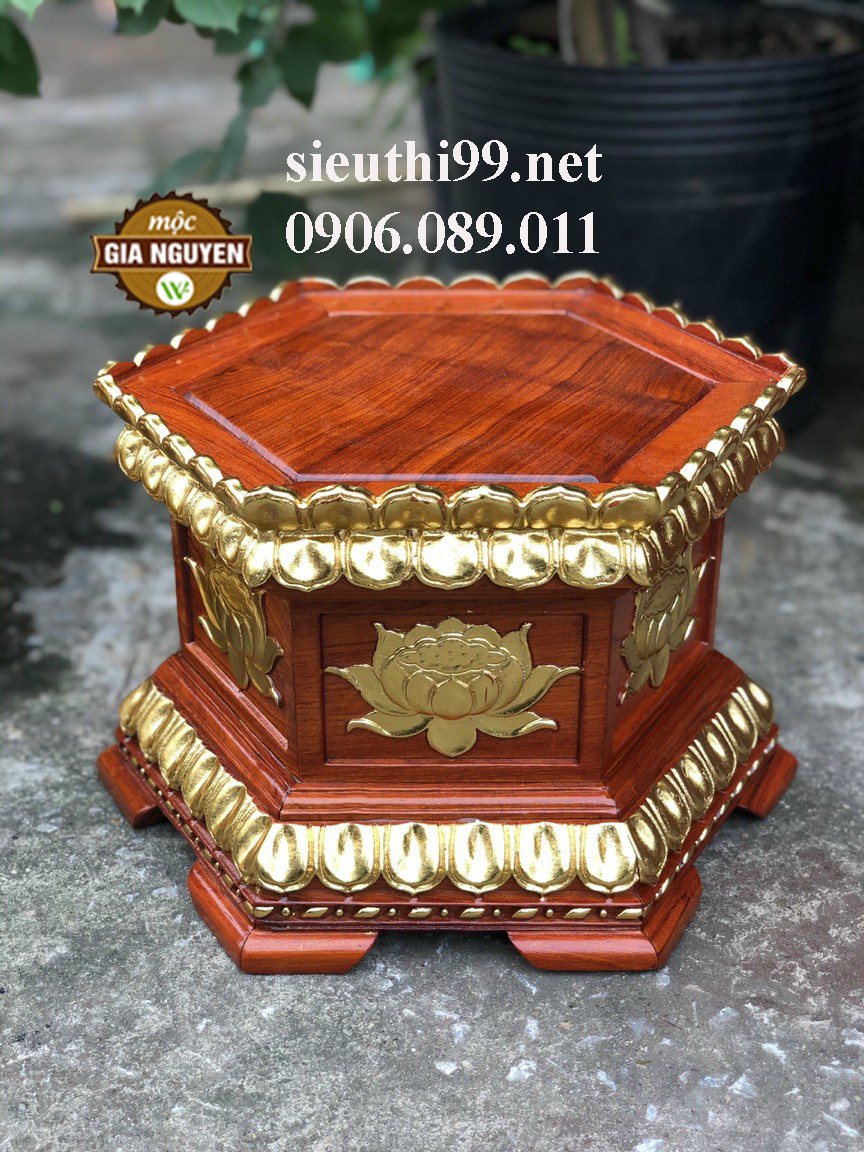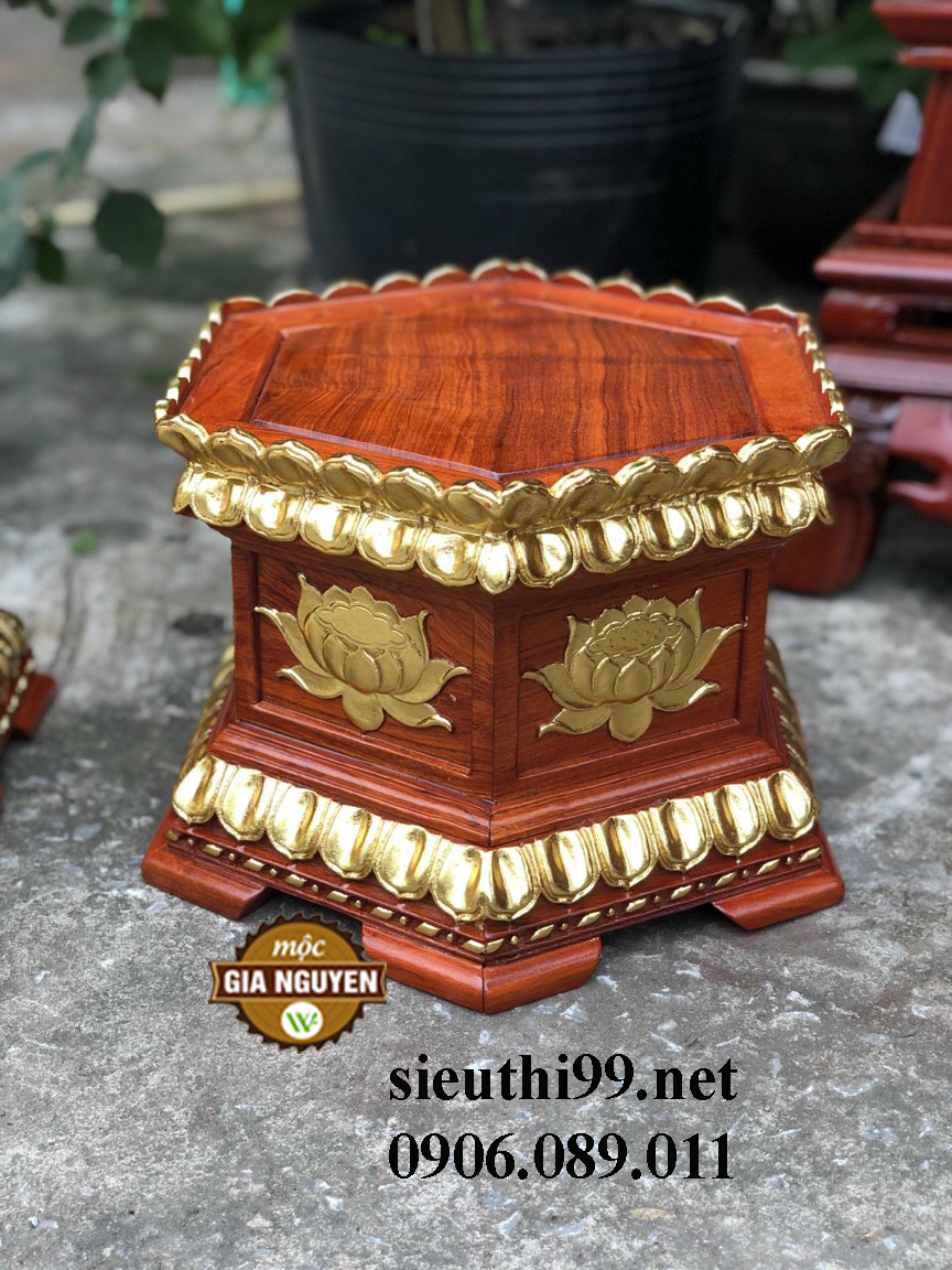 Đôn kê tượng lục giác chạm sen dát vàng