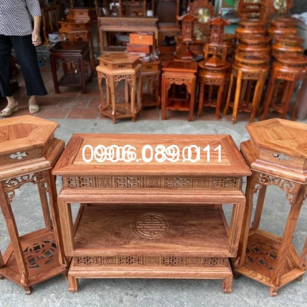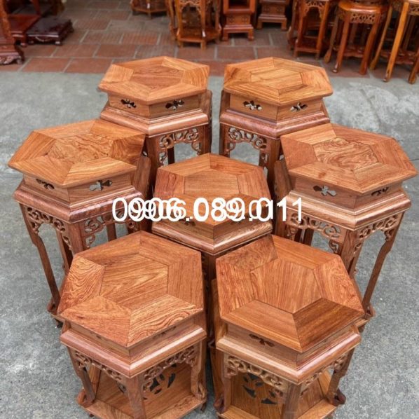 - Đôn lục giác gỗ hương để kê các vật quý giá của gia chủ hay trang trí trong nhà. Đôn đỡ vật quý, đưa vật quý lên cao để ta ngắm nhìn, bảo vệ vật khỏi những bụi bẩn hay ẩm thấp bên dưới sàn nhà.