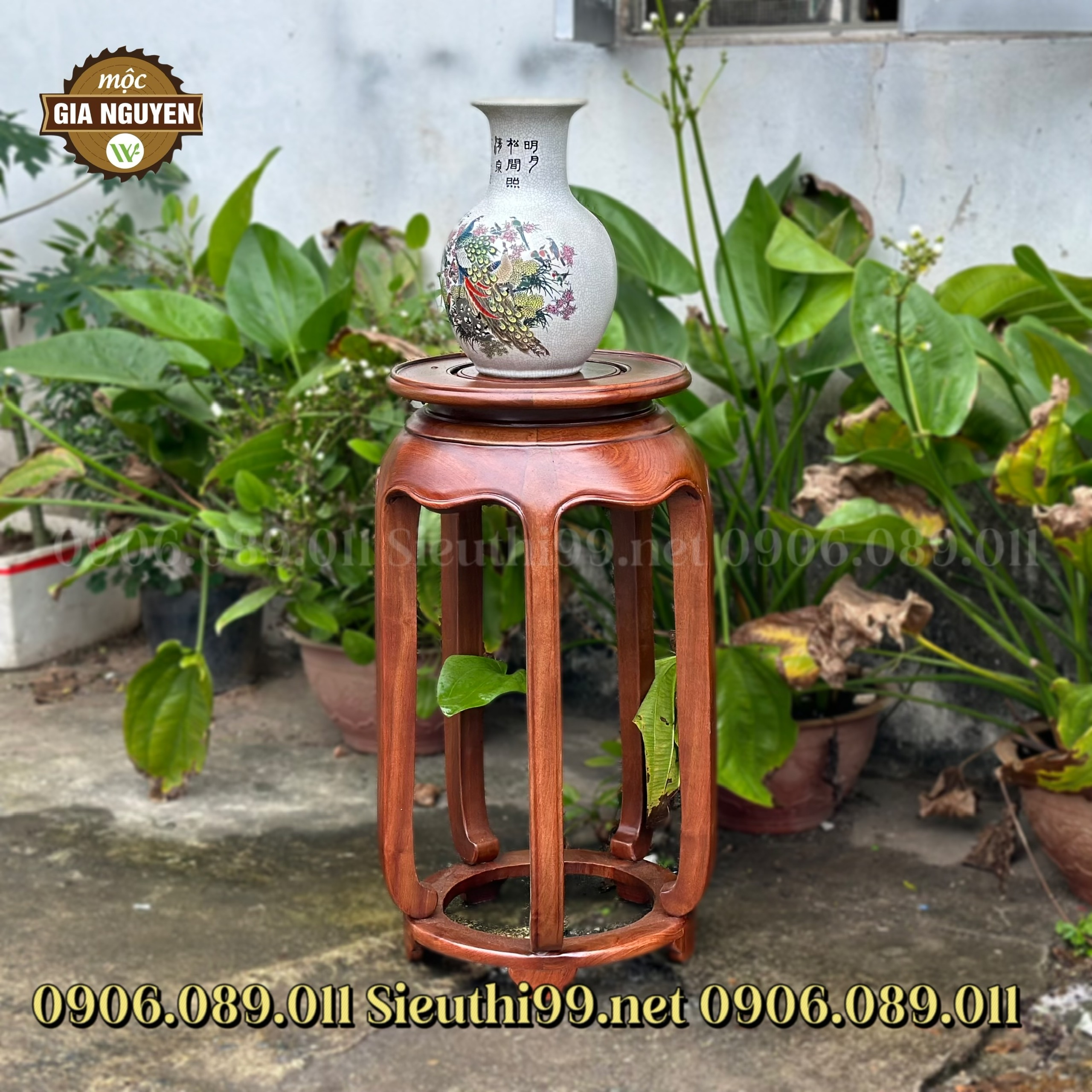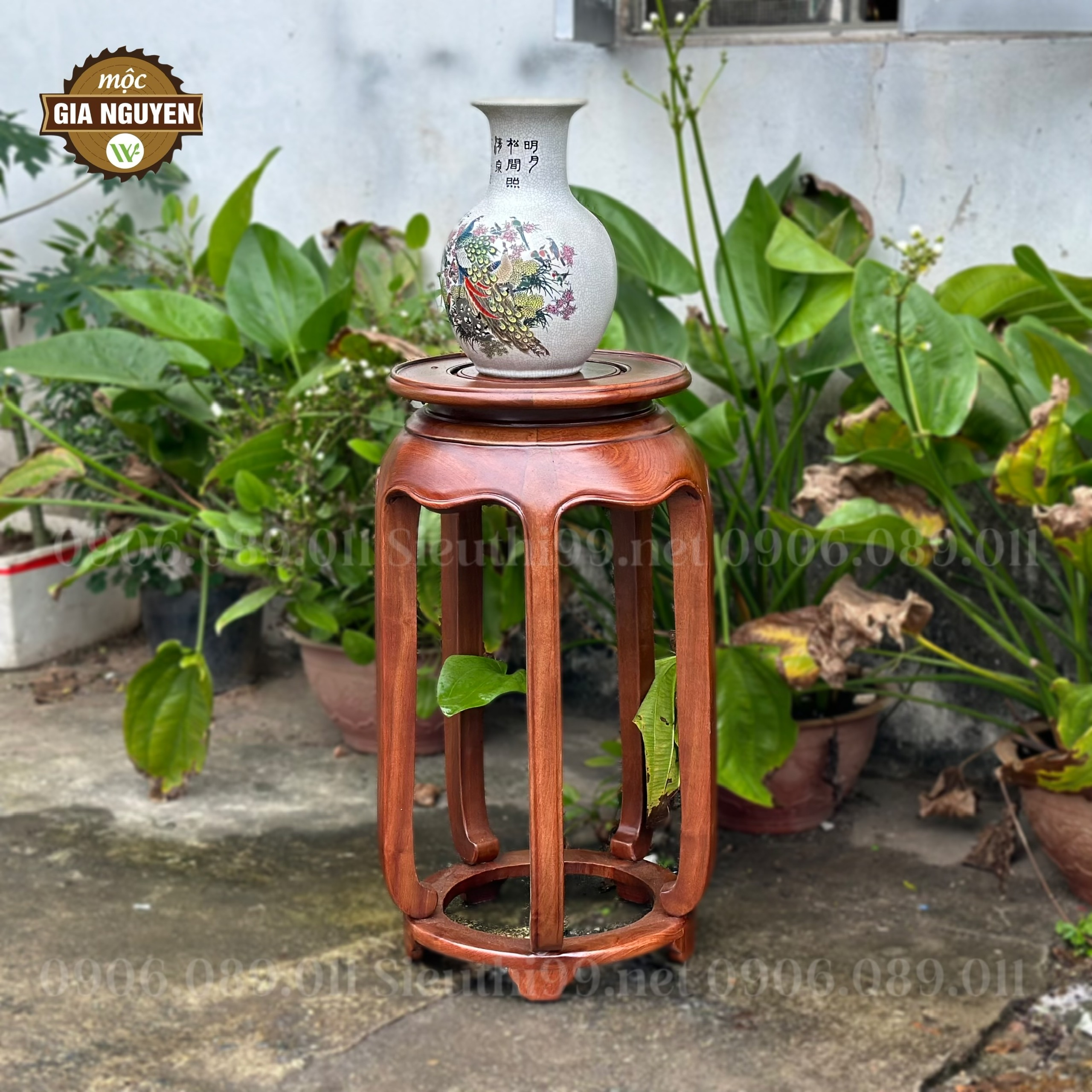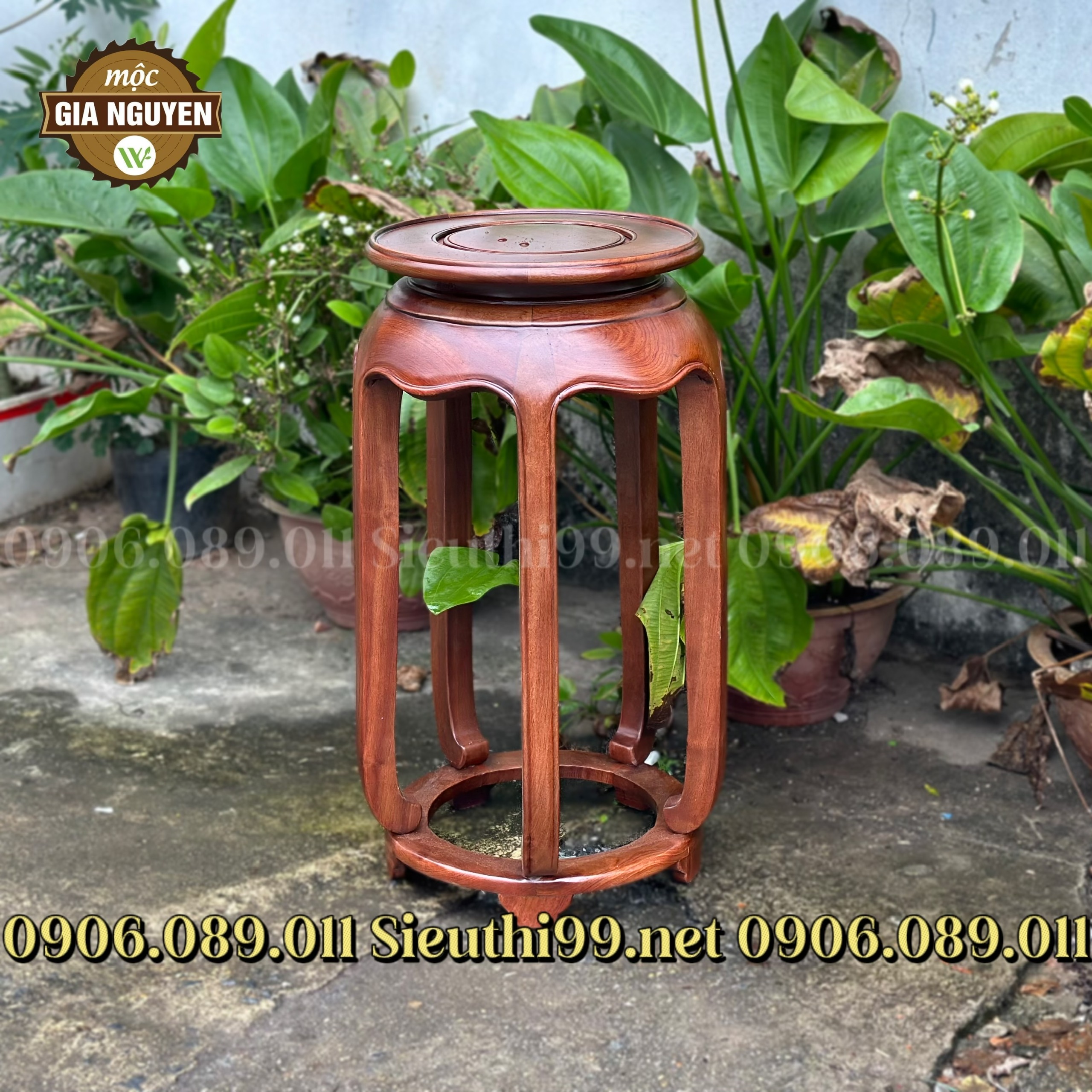 Đôn tròn gỗ hương được thiết kế sang trọng, tinh tế giúp mọi không trở nên sang trọng và nổi bật hơn. Màu gỗ tối giản giúp vật phẩm nâng tầm giá trị hơn. Chiều cao 70cm vừa phải, nâng đỡ vật cân đối.