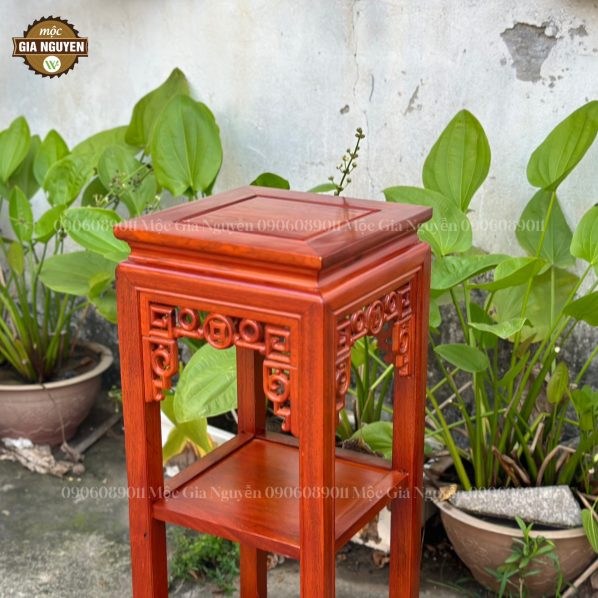 Đôn vuông 2 tầng cao 80cm màu gỗ hương