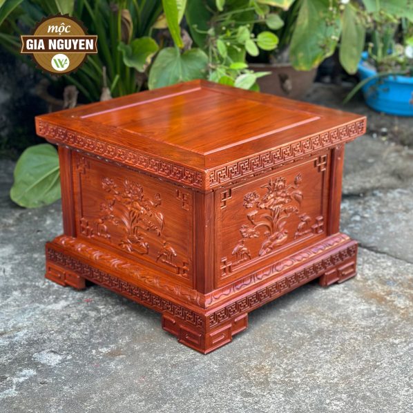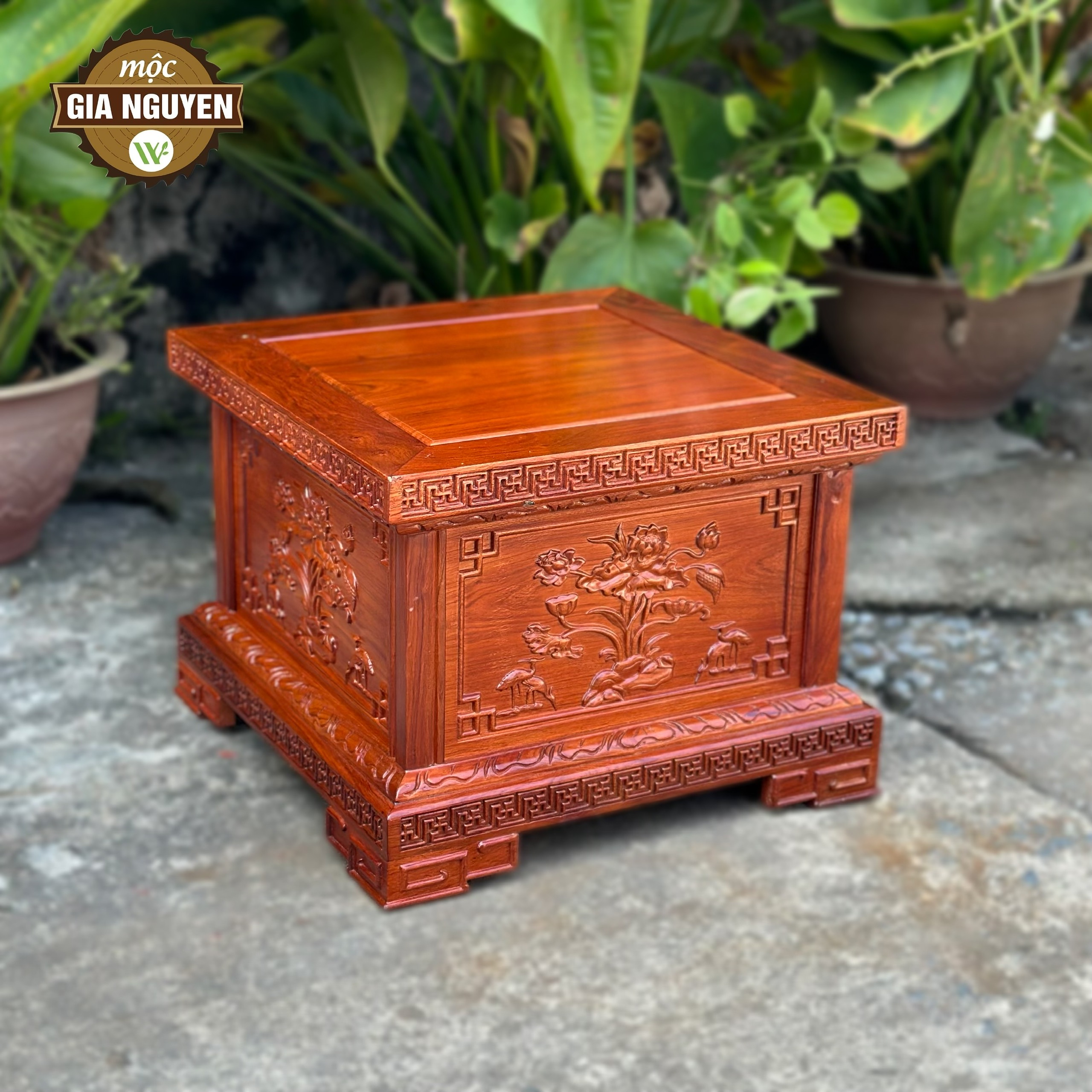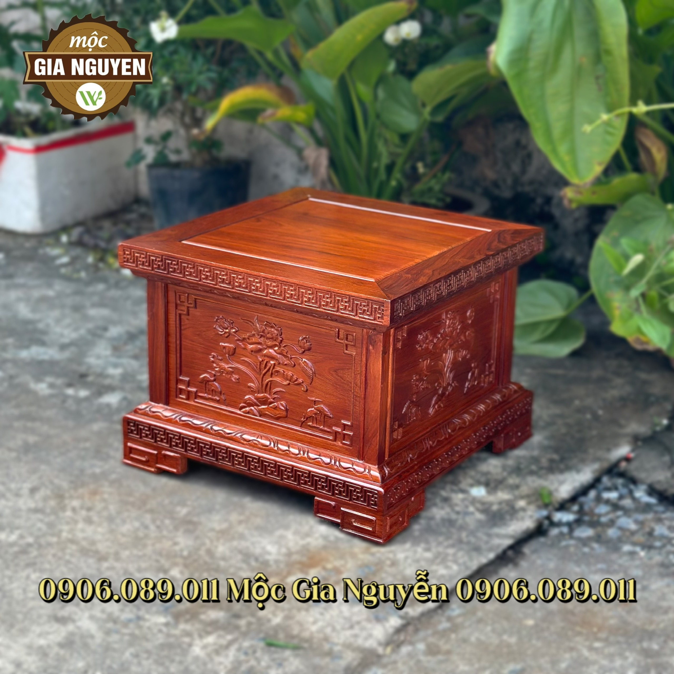 Thông tin sản phẩm: Đôn vuông chạm sen gỗ hương 30cm