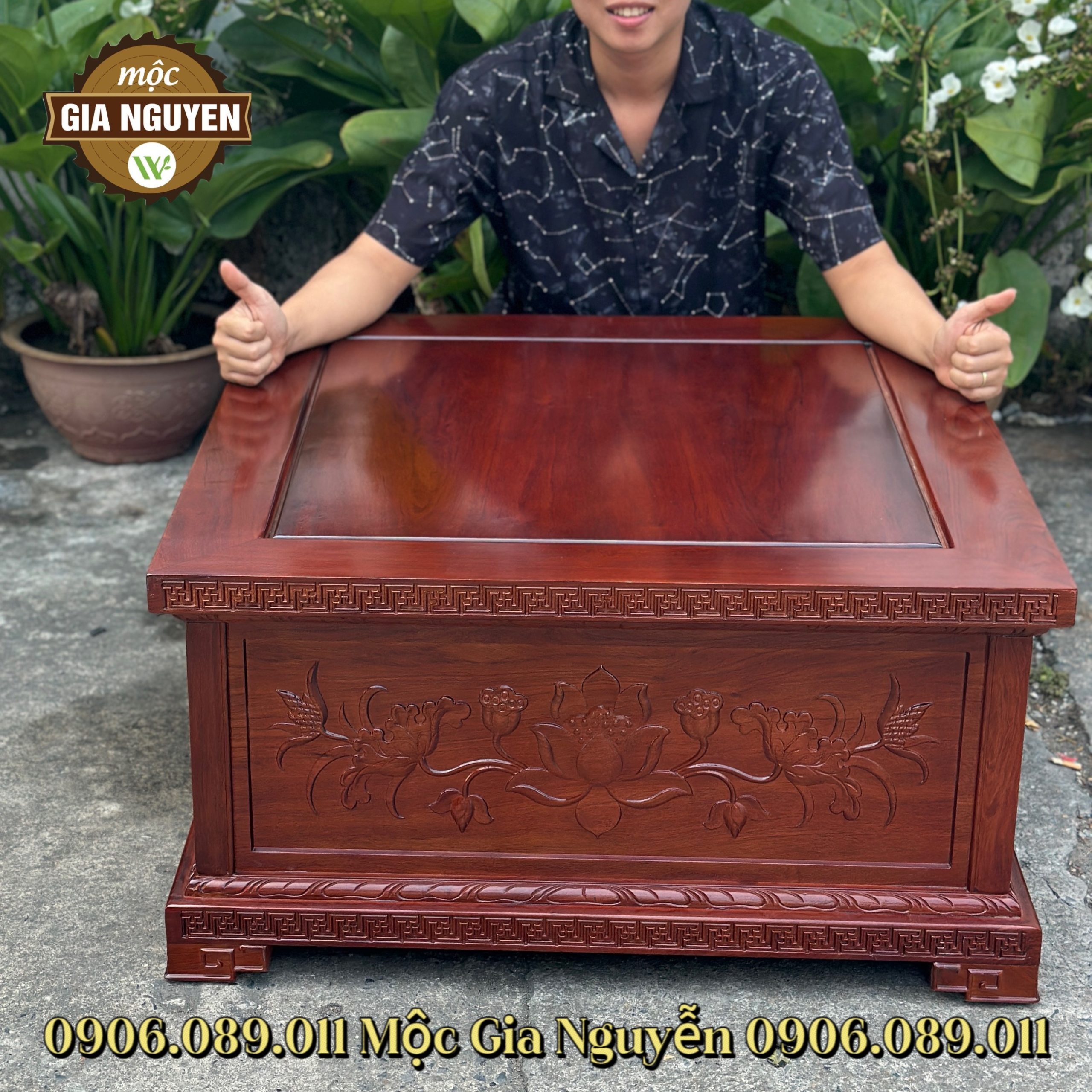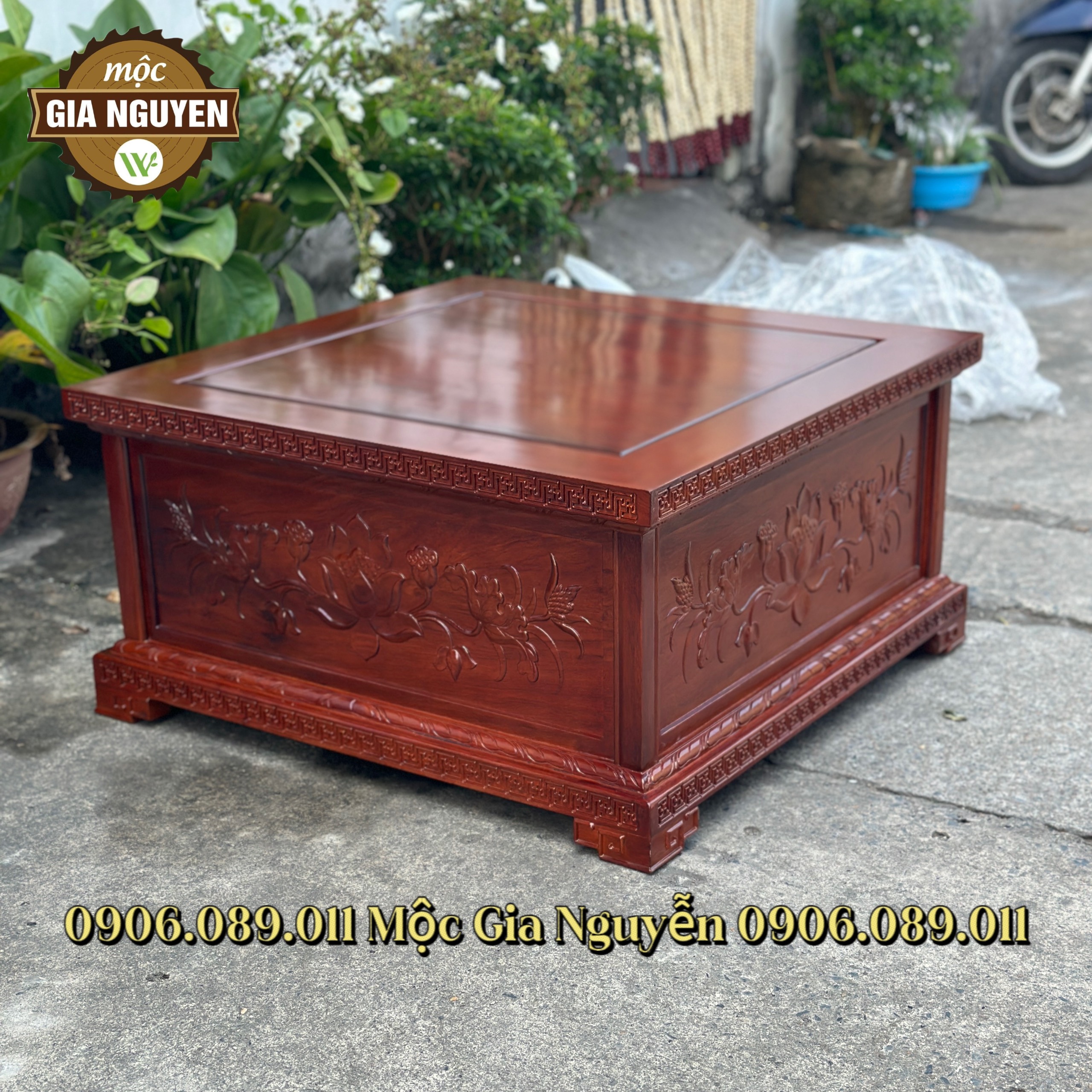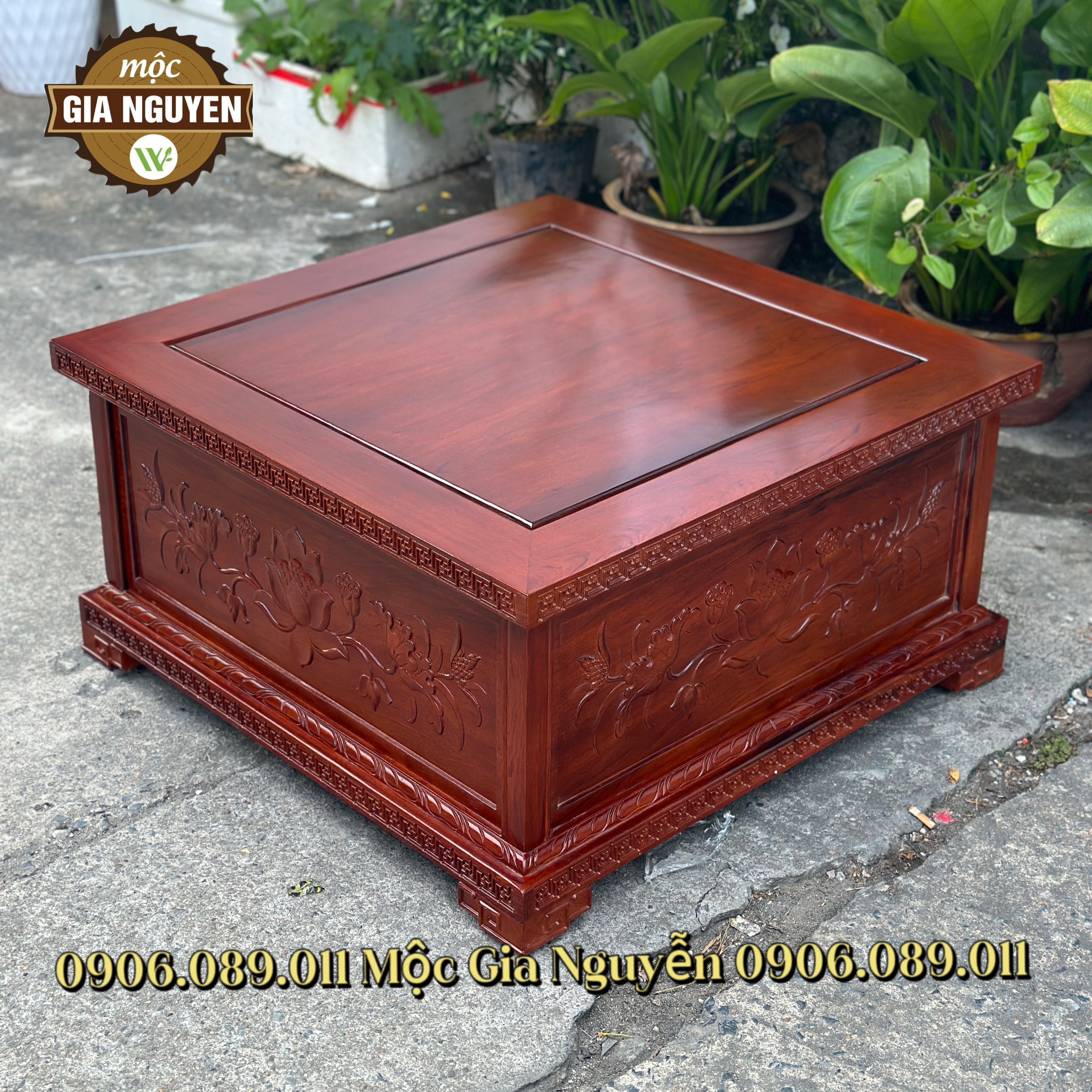- Đôn vuông kê tượng chạm sen để kê tượng, kê các vật phẩm như bình hoa, bình gốm, phụ kiện trong nhà bạn.