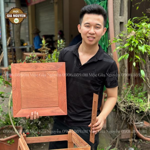 Đôn vuông lối tàu đơn giản gỗ hương LT45