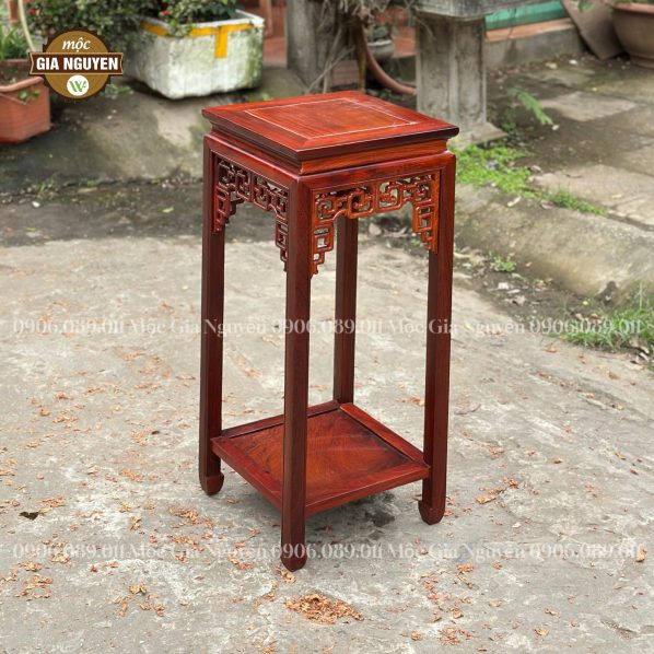 Đôn vuông lối tàu gỗ hương đục triện đơn giản là một món đồ trang trí để trưng bày trong phòng khách, phòng ngủ, hoặc phòng làm việc.