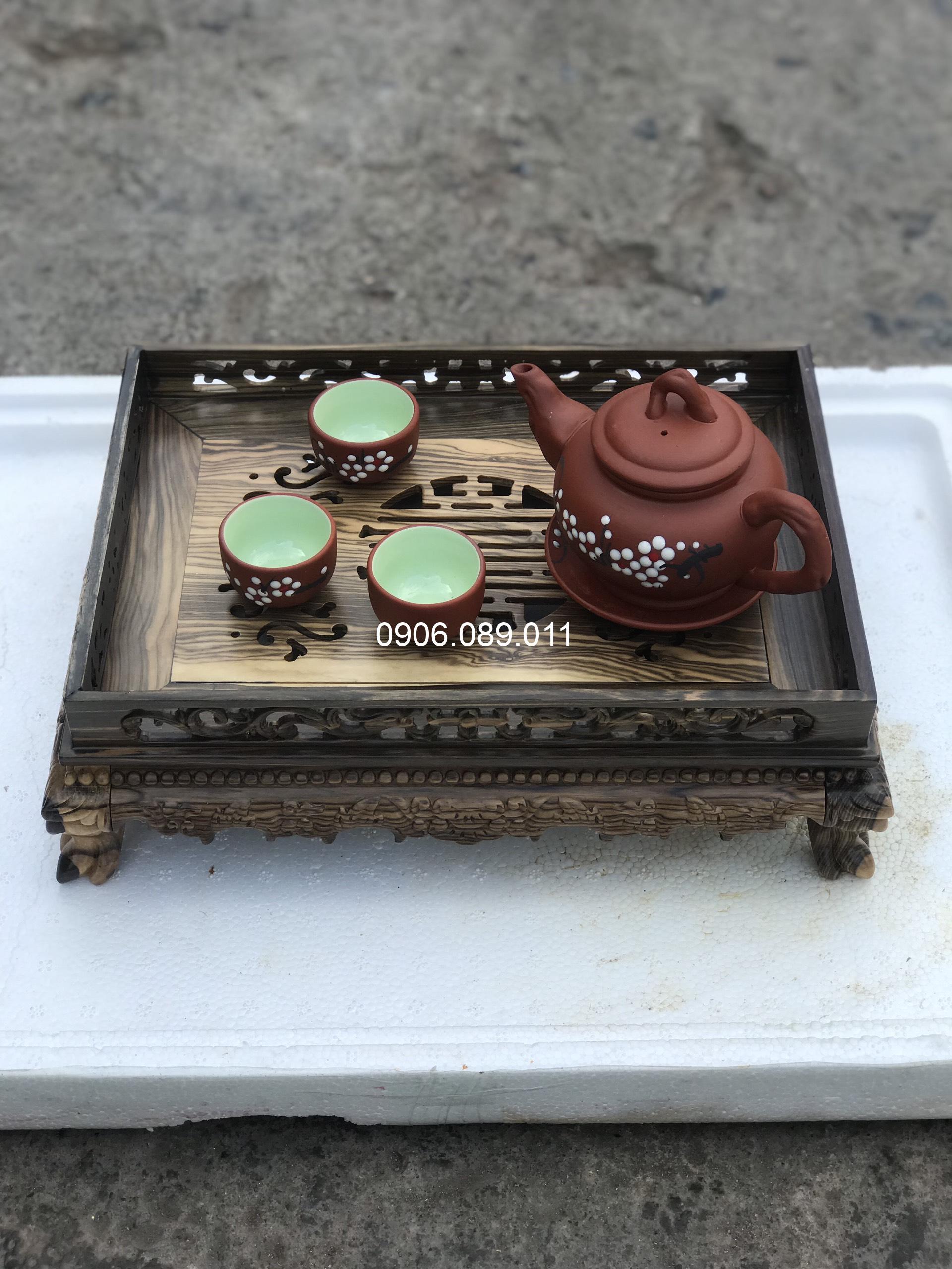 - Khay trà được làm bằng chất liệu gỗ mun cao cấp.
