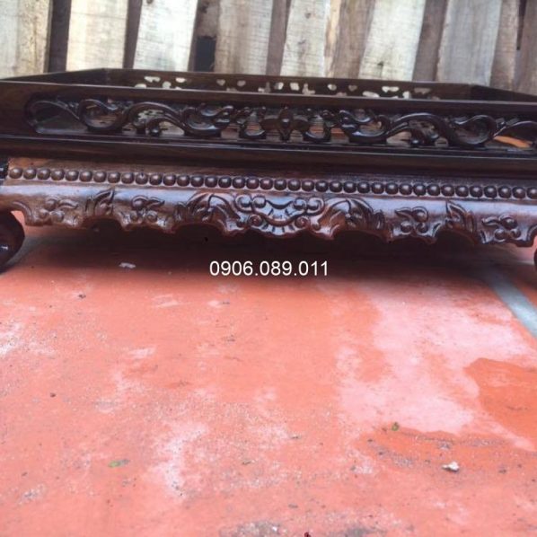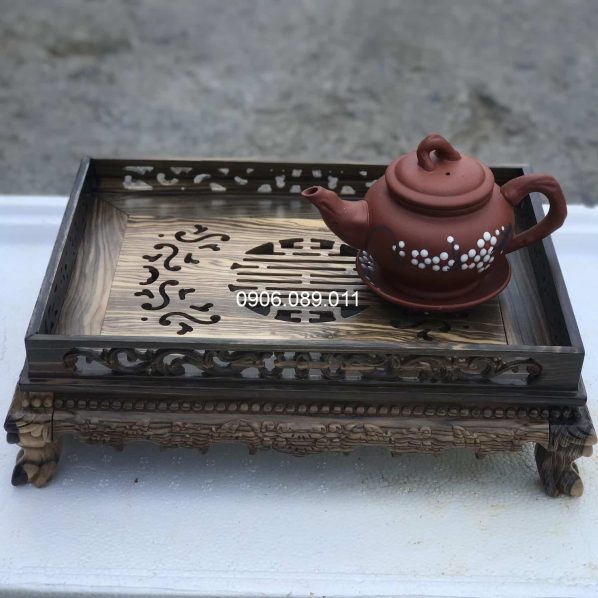 Các hoa văn trên khay trà được chạm khắc tinh xảo, thể hiện sự khéo léo và tâm huyết của các nghệ nhân. Những đường nét hoa văn mềm mại, uyển chuyển mang lại vẻ đẹp nghệ thuật và sang trọng cho sản phẩm.