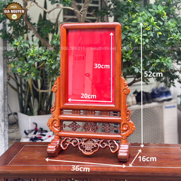 Kích thước: Di ảnh 20x30cm; Phủ bì cao 52cm x ngang 36cm.x sâu 16cm